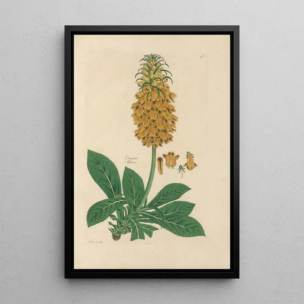 Digitalium monographia Pl28 -taidegrafiikka on teos, joka juhlistaa kasvilajin rikkautta ja monimuotoisuutta. Tarkkojen kuvien ja kirkkaiden värien ansiosta tämä taidegrafiikka kutsuu tarkkaavaiseen kasvien muotojen ja tekstuurien tarkasteluun. Jokainen yksityiskohta korostuu, luoden elävän ja dynaamisen tunnelman, joka kuljettaa katsojan rehevään puutarhaan. John Lindleyn kaiverrustekniikka mahdollistaa kasvilajin kauneuden hetkellisen vangitsemisen, tehden tästä taidegrafiikasta sekä opettavaisen että esteettisen. Se on todellinen ylistys luonnolle, joka innostaa löytöretkiin ja ihailuun.