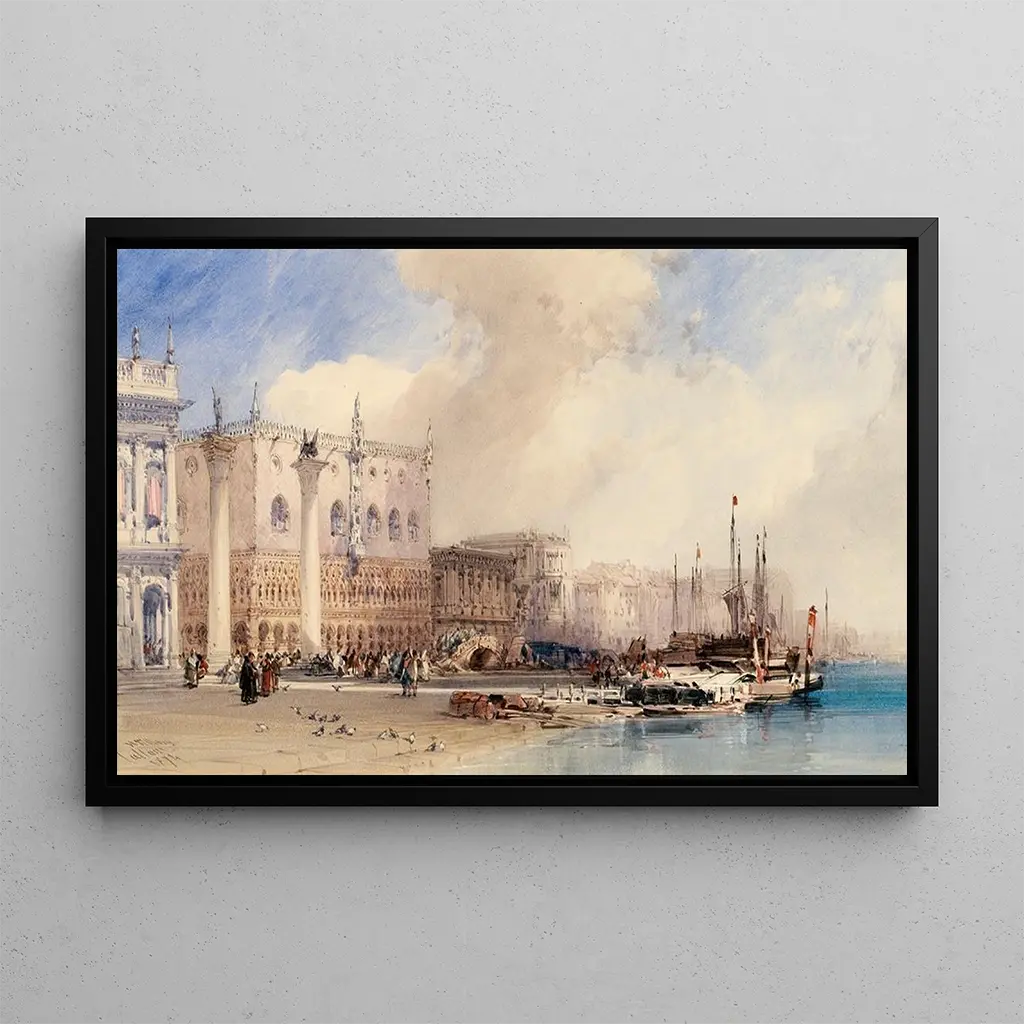 Le tableau "Le Palais des Doges, Venise" de William Callow capture l'essence même de la sérénité vénitienne. La composition met en avant l'architecture majestueuse du palais, baignée dans une lumière dorée qui évoque les reflets des canaux. Les nuances de bleu et de beige se mêlent harmonieusement, créant une atmosphère à la fois paisible et vibrante. Callow utilise des techniques de peinture à l'huile qui donnent vie aux détails architecturaux, tout en insufflant une profondeur émotionnelle à la scène. Ce tableau invite le spectateur à s'immerger dans l'élégance intemporelle de Venise, où chaque coup de pinceau raconte une histoire.