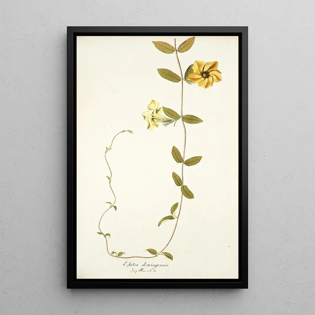 Echites domingensis -taidegrafiikan reproduktio on erinomainen valinta sisustuksen kaunistamiseen, olipa kyseessä olohuone, toimisto tai makuuhuone. Sen tulostuslaatu ja alkuperäisten värien uskollisuus tekevät siitä kiehtovan taideteoksen, joka vangitsee katseen. Tämä taulu tuo raikkautta ja rauhaa mihin tahansa tilaan, samalla juhlistaen luonnon kauneutta. Valitsemalla tämän taulun lisäät sisustukseesi ei vain taideteoksen, vaan myös keskustelunaiheen, joka korostaa harmonian yhdistämistä taiteen ja tieteen välillä.