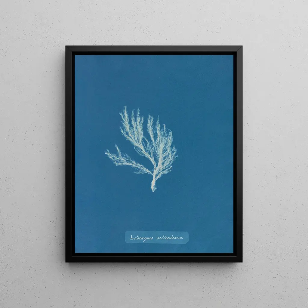 Ectocarpus siliculosus - Anna Atkins – Taidetuloste johdattaa katsojan luonnon kauneuden ytimeen, vangiten kasvitieteen olennaisen kauniin ja innovatiivisen taiteellisen lähestymistavan kautta. Tämä ikoninen teos, joka on peräisin 1800-luvulta, erottuu valokuvaus- ja cyanotypia-tekniikoiden käytöstä, menetelmästä, joka mahdollistaa syvän ja elävän sinisen sävyn tulostamisen. Valitessaan kuvattavaksi levän, Atkins ei ainoastaan dokumentoi merenkasvillisuutta, vaan nostaa aiheen taideteokseksi, kutsuen katsojan ihailemaan luonnon hienostuneisuutta ja monimutkaisuutta. Tämä työ ylittää pelkän visuaalisen tallenteen ja muuttuu pohdinnaksi taiteen ja tieteen välisestä yhteydestä, aiheesta, joka resonoi yhä tänään. Tyylin ja ainutlaatuisuuden kuvaus Anna Atkinsin tyyliä leimaa minimalistinen eleganssi, jossa jokainen yksityiskohta on huolellisesti suunniteltu korostamaan aiheidensa sisäistä kauneutta. "Ectocarpus siliculosus" -teoksessa levien orgaaniset muodot erottuvat taivaan sinisellä taustalla, luoden vaikuttavan kontrastin, joka kiinnittää huomion ja herättää mielikuvituksen. Cyanotypia, sen sinisävyt, luo sekä rauhallisen että salaperäisen tunnelman, kuljettaen katsojan maailmaan, jossa luonto ja taide kohtaavat. Tämä teos ei rajoitu pelkkään esitykseen; se sisältää myös tekstuurien ja kuvioiden tutkimista, paljastaen meren biodiversiteetin rikkautta. Jokainen tuloste avaa ikkunan usein unohdettuun maailmaan, kutsuen uudelleen löytämään elementtien kauneuden ympärillämme. Taiteilija ja hänen vaikutuksensa Anna Atkins, usein ensimmäisenä naisvalokuvaajana pidetty, oli keskeisessä roolissa valokuvauksen kehittymisessä taiteen muotona. Hänen työnsä ei ainoastaan edistänyt tieteellistä dokumentointia, vaan avasi myös tien uudelle tavalla ajatella taiteen ja luonnon suhdetta. Aikakaudella, jolloin valokuvaus oli vielä alkuvaiheessa, Atkins osasi yhdistää tieteellisen tarkkuuden ja taiteellisen herkkyyden, vaikuttaen moniin taiteilijoihin ja tiedemiehiin, jotka seurasivat häntä. Hänen visionäärinen lähestymistapansa mahdollisti keskustelun eri alojen välillä, asettaen