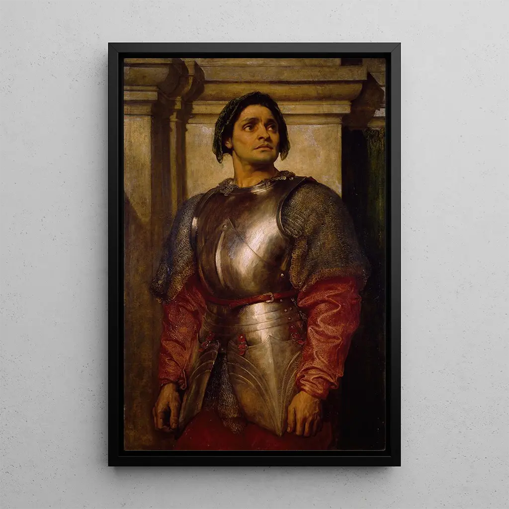 Taidegrafiikka Un Condottiere -teoksesta Frederic Leightonista herättää renessanssin aikakauden sotilaspäällikön suuruuden ja arvokkuuden. Tässä teoksessa rikkaat värit ja yksityiskohtaiset panssariefektit luovat voiman ja arvokkuuden ilmapiirin. Leightonin tekniikka, joka on tunnettu vaikuttavasta realismistaan, mahdollistaa hänen aiheen ytimekkään olemuksen vangitsemisen, jonka päättäväinen katse ja ylpeä asento välittävät voiman ja jalouden vaikutelman. Jokainen elementti koostumuksessa, kankaista koristeisiin, vahvistaa ajattoman sankarin käsitystä, joka ilmentää rohkeuden ja kunnian arvoja.