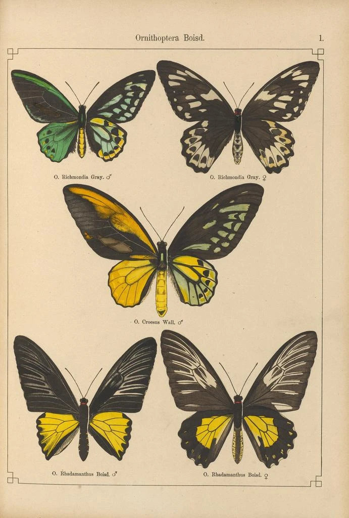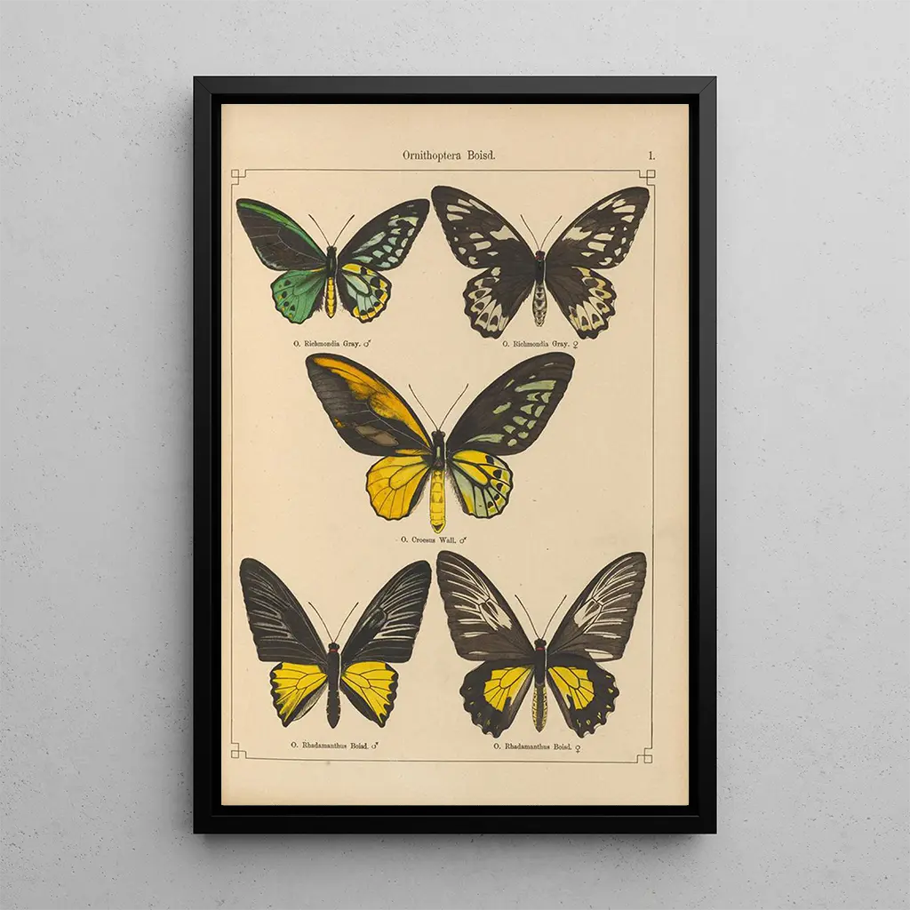 L' taidegrafiikka "Papillons exotiques Pl001" Otto Staudingerilta on elävä juhla biodiversiteetistä. Kirkkaita värejä, jotka ulottuvat syvistä sinisistä kirkkaisiin keltaisiin, luovat elävän taulun, joka heti vangitsee katsojan huomion. Staudingerin herkkä tekniikka, yhdistettynä terävään yksityiskohtien huomioimiseen, mahdollistaa jokaisen perhosen lajin ainutlaatuisuuden ja kiehtovuuden. Teos herättää keveyden ja ilon tunnelman, kutsuen katsojan ihailemaan näiden siivekkäiden olentojen ohikiitävää kauneutta.
