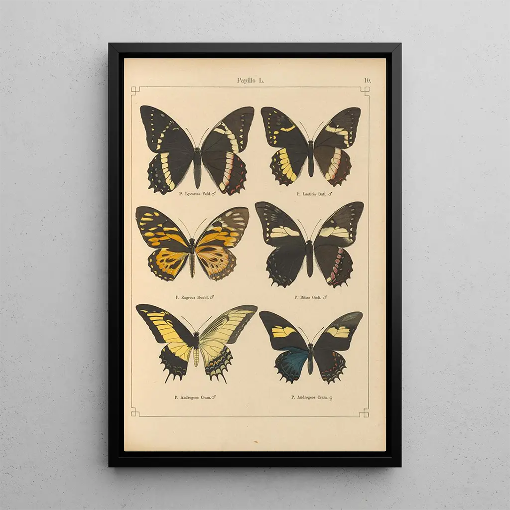 Taidegrafiikan Papillons exotiques Pl010 reproduktio viedä meidät kiehtovaan maailmaan, jossa luonto ilmaisee itseään kirkkaiden värien ja hienostuneiden muotojen kautta. Otto Staudinger, poikkeuksellisella taidollaan, onnistuu ikuistamaan nämä hohtavat siivet omaavat hyönteiset, luoden keveyden ja arvokkuuden ilmapiirin. Jokainen perhonen, huolellisesti yksityiskohtainen, vaikuttaa olevan valmis lentoon, tuoden liikkeen tuntua teokseen. Värikkäät sävyt, syvistä sinisistä kirkkaisiin keltaisiin, sekoittuvat harmonisesti, paljastaen luonnon maailman kauneuden ja monimuotoisuuden.