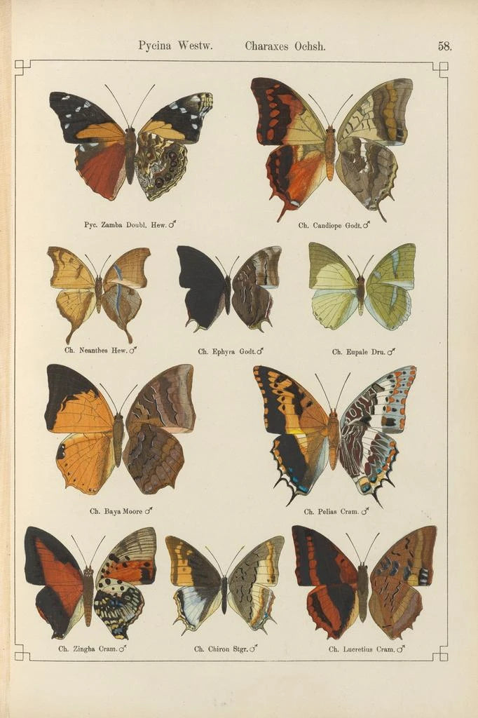 Otto Staudinger, illustrateur et entomologiste du XIXe siècle, a su marier sa passion pour la nature avec son talent artistique. Ses œuvres, notamment ses illustrations de papillons, sont le reflet d'une époque où l'observation scientifique et l'art se croisaient. Staudinger a été influencé par les avancées de la biologie et a consacré sa carrière à représenter la beauté et la diversité du monde naturel. Ses "Papillons exotiques Pl058" illustrent parfaitement son approche, alliant précision scientifique et sensibilité artistique, faisant de lui un pionnier dans le domaine de l'illustration naturaliste.