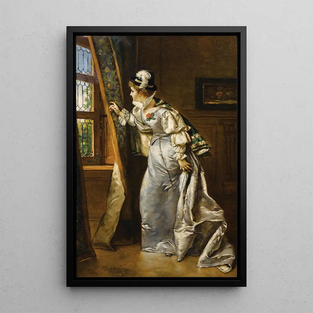 "Élégante à la fenêtre" -taidegrafiikka Władysław Bakałowiczilta vangitsee hetken rauhaa, jossa nainen, hienostuneesti pukeutuneena, seisoo ikkunan lähellä. Luonnonvalo, joka pääsee läpi lasin, korostaa hänen asunsa hienostuneita yksityiskohtia ja luo kiehtovan varjojen ja valojen leikin. Pastellivärit, yhdistettynä sulavaan maalaustekniikkaan, antavat teokselle pehmeän ja uneksivan tunnelman. Tämä taidegrafiikka viestii mietiskelevästä tauosta, hetkestä kestävää armoa ajassa.