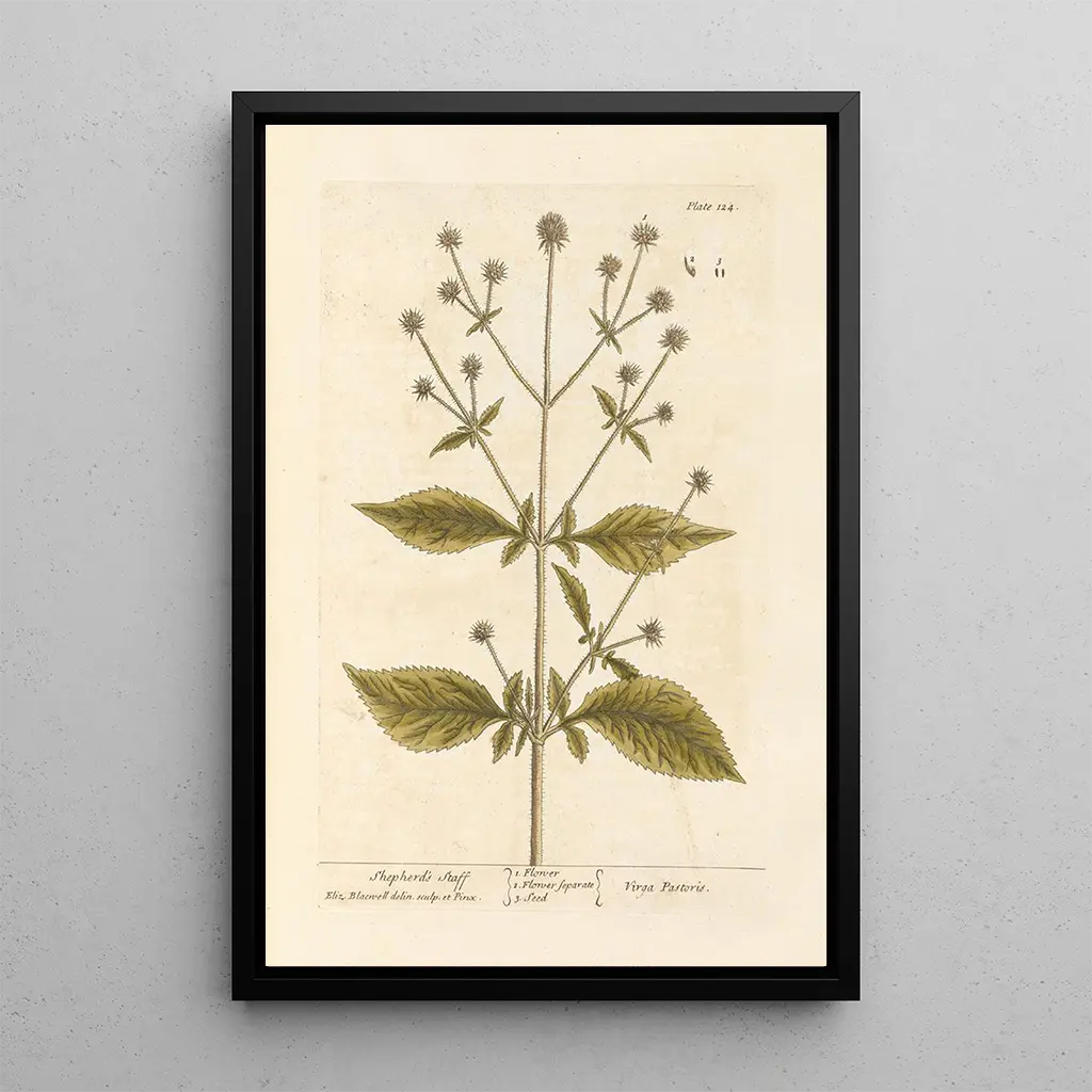 La taidegrafiikka du Bâton de berger d'Elizabeth Blackwell nous plonge dans un univers où la nature est mise en lumière avec une délicatesse fascinante. Cette œuvre, réalisée avec une technique de gravure sur cuivre, se distingue par ses détails minutieux et ses couleurs éclatantes. Les nuances de vert et de jaune se mêlent harmonieusement, créant une atmosphère apaisante et contemplative. Chaque feuille, chaque tige est représentée avec un soin extrême, invitant le spectateur à une exploration attentive de la beauté naturelle. La composition équilibrée et l'éclairage subtil ajoutent à la magie de cette toile, faisant du Bâton de berger un véritable hommage à la flore.