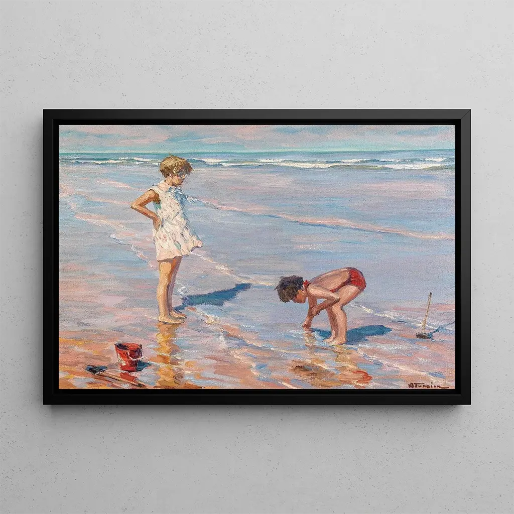 Enfants jouant sur une plage : une scène de joie et d'insouciance La reproduction Enfants jouant sur une plage de Charles Atamian évoque une atmosphère de légèreté et de bonheur. Dans cette toile, des enfants s’ébattent sur le sable doré, leurs rires résonnant presque à travers la peinture. Les couleurs vives, allant des bleus éclatants du ciel aux jaunes chaleureux du soleil, créent une harmonie visuelle qui attire immédiatement l'œil. La technique de l'artiste, caractérisée par des coups de pinceau fluides et expressifs, donne vie à cette scène estivale, capturant l'essence même de l'enfance. Chaque détail, des vagues qui s'écrasent doucement sur le rivage aux éclats de rire des enfants, contribue à une ambiance joyeuse et nostalgique. Charles Atamian : un maître de la lumière et de la couleur Charles Atamian, actif au début du XXe siècle, est reconnu pour sa capacité à capturer la lumière et la couleur dans ses œuvres. Influencé par le mouvement impressionniste, il a su intégrer des éléments de ce style tout en développant une approche personnelle. Atamian a souvent exploré des thèmes liés à la nature et à la vie quotidienne, cherchant à immortaliser des moments fugaces. Sa carrière, bien que moins connue que celle de certains de ses contemporains, a laissé une empreinte durable dans le monde de l'art, témoignant de l'importance de la joie simple et des plaisirs de la vie. Une acquisition décorative aux multiples atouts La reproduction Enfants jouant sur une plage est une pièce décorative idéale pour apporter une touche de fraîcheur et de gaieté à votre intérieur. Que ce soit dans un salon, un bureau ou une chambre d'enfant, ce tableau invite à la rêverie et à la nostalgie des étés passés. Sa qualité de reproduction garantit une fidélité remarquable aux couleurs et aux détails de l'œuvre originale, permettant ainsi d'apprécier pleinement l'art de Charles Atamian. Avec son attrait esthétique indéniable, cette toile devient un élément central de votre décoration, suscitant des conversations et des sourires à chaque regard.
