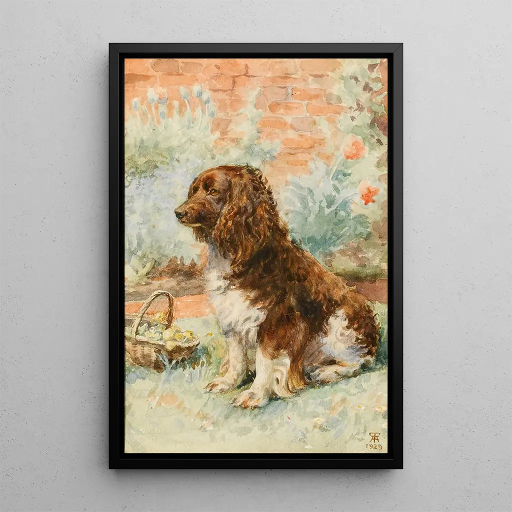 Taidetuloste | Epagneul dans le jardin - Ecole anglaise