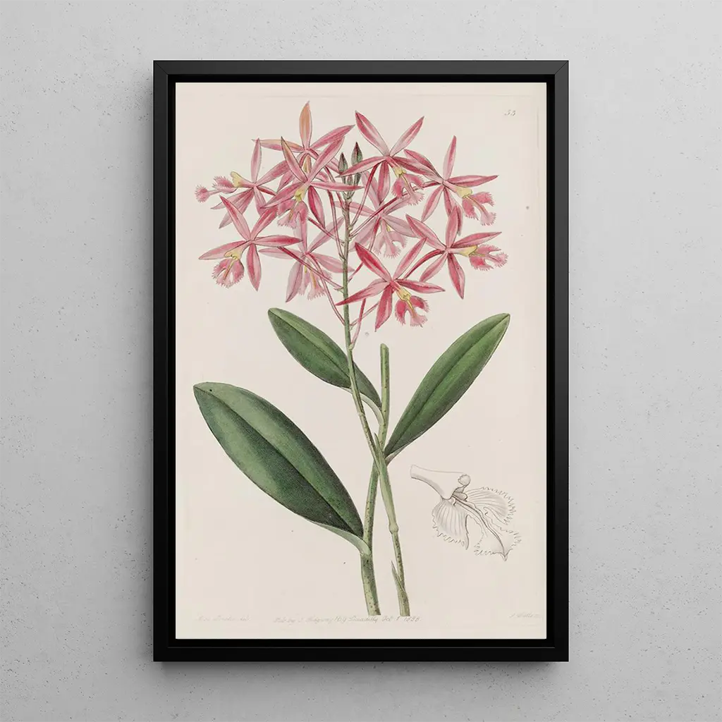 Sydenham Edwards, joka oli aktiivinen 1800-luvun alussa, tunnetaan yhtenä aikansa merkittävimmistä kasviillustrattoreista. Tieteellisessä ympäristössä kouluttautunut, hän osasi yhdistää taiteen ja tieteen, kunnioittaen kasvistoa teostensa kautta. Hänen taidegrafiikka-teoksensa, mukaan lukien "Epidendrum de M. Schomburgk", todistavat ajasta, jolloin kasvienselitys oli kukoistuksessa, erityisesti Etelä-Amerikan tutkimusmatkojen ansiosta. Edwardsin vaikutteet tulivat hänen aikalaistensa löydöksistä, ja hän osallistui kasvilajien dokumentointiin, ollen keskeisessä roolissa biodiversiteetin ymmärtämisessä ja arvostamisessa. Hänen työnsä on silta taiteen ja tieteen välillä, merkiten aikaa, jolloin jokainen kasvi oli löydettävä aarre.