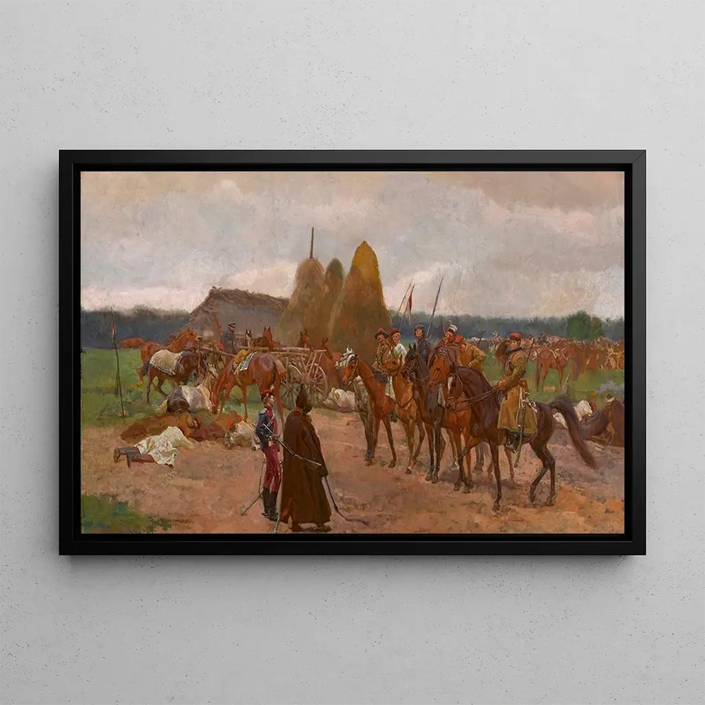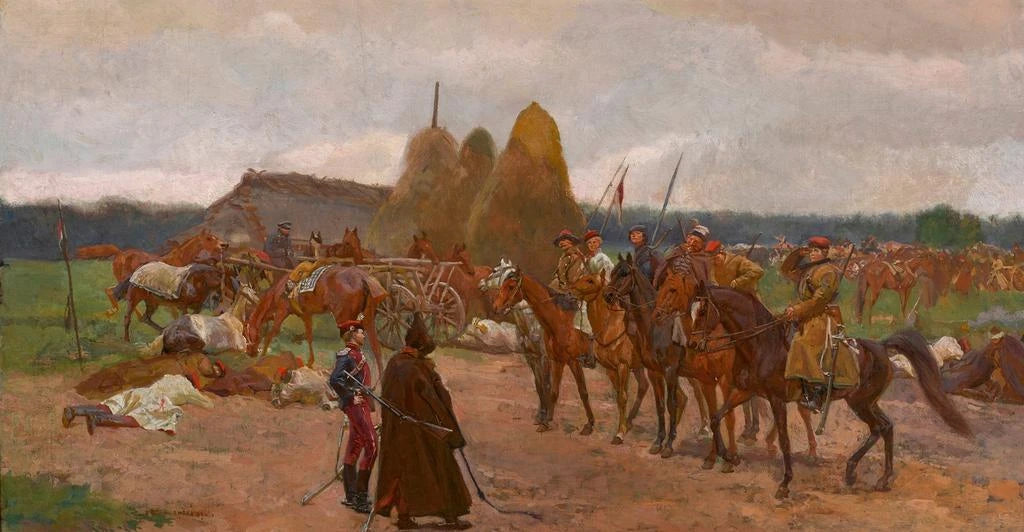 Józef Chełmoński, artiste polonais du XIXe siècle, est reconnu pour ses œuvres qui évoquent les luttes et les aspirations de son peuple. Influencé par les événements tumultueux de son époque, il a su traduire à travers sa peinture les émotions et les combats de la nation polonaise. Chełmoński a également été marqué par le réalisme, ce qui lui a permis de créer des œuvres d'une grande force narrative. "Épisode d'insurrection" s'inscrit dans ce contexte, témoignant de son engagement envers son pays et de sa volonté de faire entendre la voix des opprimés à travers l'art.