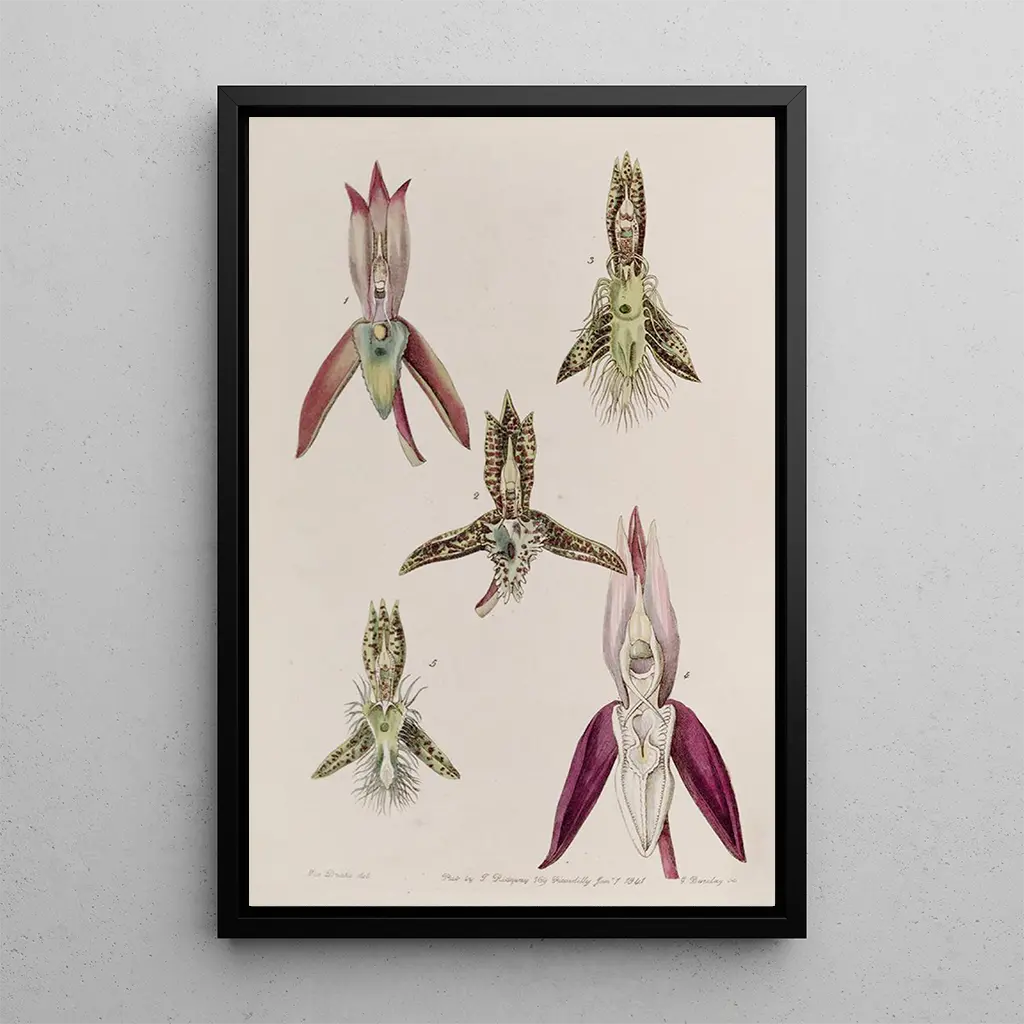 Sydenham Edwardsin "Diverses lajeja Catasetum" on todellinen ylistys kukkivasta monimuotoisuudesta. Tämä teos, täynnä yksityiskohtia, esittelee lukuisia eksoottisia kukkia eri muodoissa ja väreissä, herättäen ihailua luonnon ihmeellisyyttä kohtaan. Värikkäät vihreän, keltaisen ja violetin sävyt sekoittuvat harmonisesti, luoden elävän ja rauhoittavan ilmapiirin. Edwardsin käyttämä kaiverrustekniikka mahdollistaa jokaisen sävyn ja tekstuurin vangitsemisen, tarjoten syvyyden ja realismin vaikutelman. Tämä taidegrafiikka kutsuu tarkkaavaiseen katseluun, paljastaen näiden harvinaisten lajien piilotetun kauneuden.