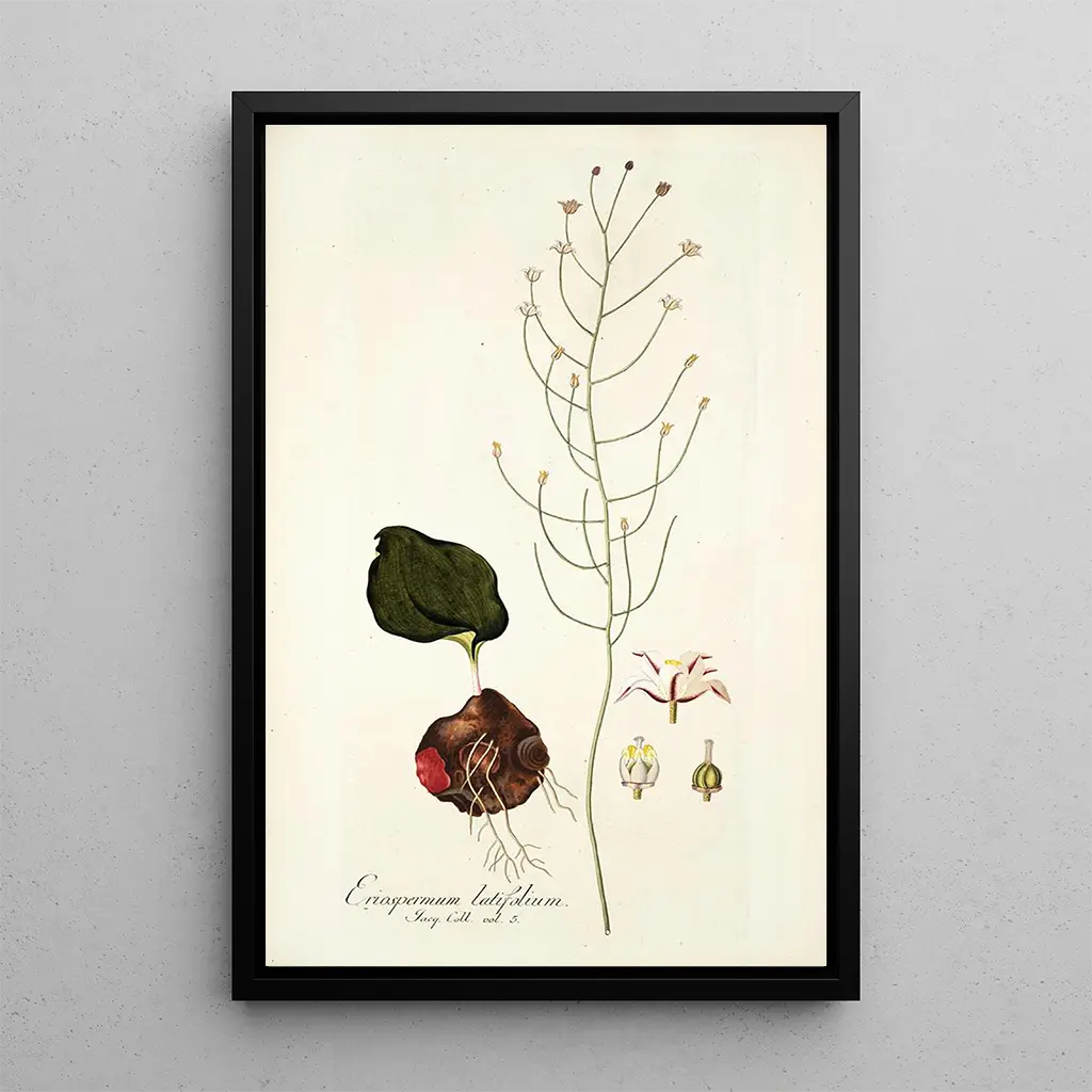Eriospermum latifolium : luonnonkauneus, joka kannattaa löytää Lteos "Eriospermum latifolium" Nikolaus Joseph Freiherr von Jacquinilta on kiehtova esitys 1700-luvun botaniikasta. Tämä taidegrafiikka, täynnä yksityiskohtia, korostaa tämän kasvin ainutlaatuista kauneutta, sen leveitä lehtiä ja herkkiä varsia. Värien kirjava skaala, syvän vihreästä kirkkaaseen keltaiseen, luo elävän ja dynaamisen tunnelman. Jacquinin hallitsema akvarellitekniikka mahdollistaa kasvin tekstuurien ja sävyjen tarkkaan kuvaamiseen. Jokainen elementti on huolellisesti tarkkailtu, kutsuen katsojan tarkkailevaan luonnon ihailuun. Nikolaus Joseph Freiherr von Jacquin : taidegrafiikan pioneeri Nikolaus Joseph Freiherr von Jacquin, itävaltalainen botaniikan ja taidegrafiikan asiantuntija, oli keskeisessä roolissa 1700-luvun botaniikan kuvittamisen kehityksessä. Wienin yliopistossa kouluttautunut, hän sai vaikutteita aikansa tutkimusmatkoilta ja tieteellisistä löydöksistä. Hänen teoksensa, kuten "Eriospermum latifolium", todistavat hänen sitoutumisestaan kasvilajien dokumentointiin ja niiden tekemiseen laajasti saataville. Jacquin oli myös aktiivinen tieteellinen yhteisön jäsen, osallistuen kasvilajien luokitteluun ja eurooppalaisten kasvitieteellisten puutarhojen rikastuttamiseen. Hänen perintönsä elää edelleen hänen kuvittamissaan, jotka yhdistävät tieteellisen tarkkuuden ja taiteellisen sensitiivisyyden. Monipuolinen koristeellinen hankinta Eriospermum latifolium -taidegrafiikan reproduktio on ihanteellinen koriste-esine tuomaan luonnon elementtiä sisätiloihisi. Olipa kyseessä olohuone, toimisto tai makuuhuone, tämä taidegrafiikka kiinnittää huomion ja herättää kiinnostusta. Tulostuksen laatu takaa väreihin ja yksityiskohtiin uskollisuuden alkuperäisteokseen, jolloin voit nauttia tämän kasvin kauneudesta samalla kun lisäät eleganssia sisustukseesi. Estetiikkansa ansiosta tämä kangas muodostuu todelliseksi keskipisteeksi, joka kutsuu pohtimaan biodiversiteetin rikkautta ja botaniikan taidetta.