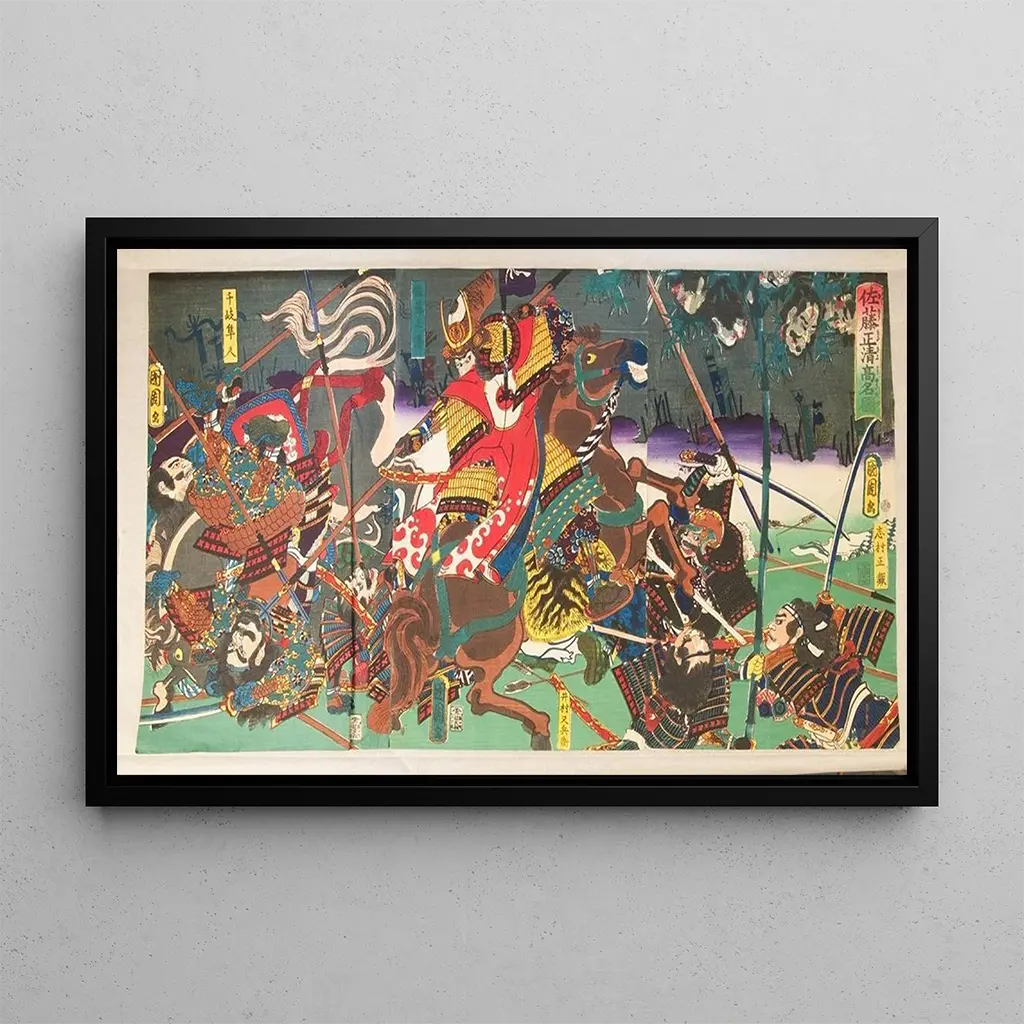 La reproduction de cette estampe japonaise est un choix décoratif idéal pour enrichir votre intérieur. Que ce soit dans un salon, un bureau ou une chambre, ce tableau apporte une touche d'élégance et de sérénité. Sa qualité d'impression garantit une fidélité remarquable aux détails originaux, permettant de ressentir toute la magie de l'œuvre de Kunichika. L'attrait esthétique de cette toile réside dans sa capacité à s'intégrer harmonieusement dans divers styles de décoration, qu'ils soient traditionnels ou contemporains. Offrez-vous une pièce unique qui saura captiver les regards et susciter des conversations.