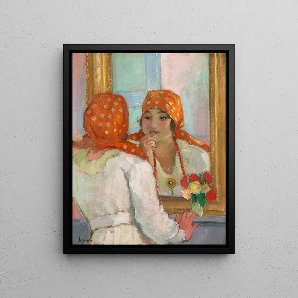 Henri Lebasque, ranskalainen taiteilija, on kuuluisa elämän arkipäivän kohtauksia ja eloisia muotokuvia kuvaavista teoksistaan. 'Peilin edessä' on teos, joka vangitsee naiseuden olemuksen esittämällä naisen katsovan peiliin. Valo, joka heijastuu pintaan, ja Lebasquen käyttämät kirkkaat värit luovat sekä intiimin että iloisen tunnelman. Tämä 1900-luvun alussa maalattu teos ei ainoastaan paljasta taiteilijan kykyä vangita kauneutta, vaan myös hänen kykyään herättää tunteita koostumuksen ja värin kautta. Nykyisessä sisustustrendissä tämä teos voisi tuoda tilaan ripauksen eleganssia ja hienostuneisuutta. Taiteen ystävät arvostavat tapaa, jolla Lebasque leikkii valolla ja varjoilla, tarjoten vangitsevan visuaalisen kokemuksen. Tämän teoksen löytämiseen on kutsu Artem Legrandilla.