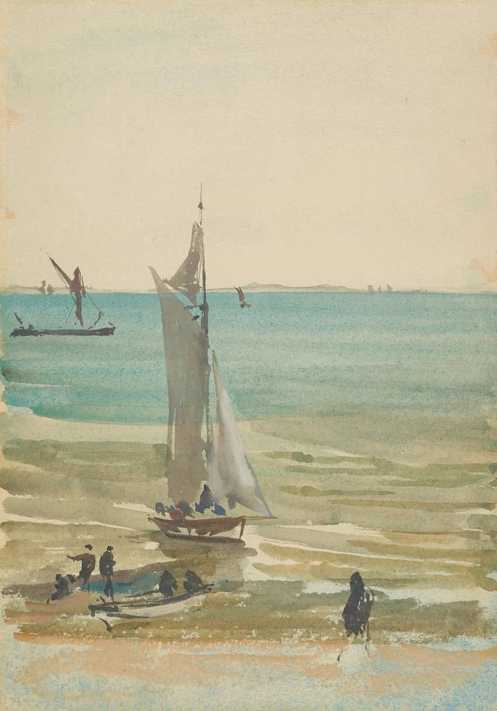"Southend Le yacht de plaisance" kuvaa eläväistä kohtausta, jossa valkoisten purjeiden liike kontrastoi rauhallisten vesien tyyneyden kanssa. Whistler, valon mestari, käyttää pehmeitä sävyjä luodakseen lämpimän auringonpaisteen tunnelman. Yksityiskohdat veneestä, sen elegantit linjat, on toteutettu tarkasti, mikä korostaa taiteilijan taituruutta. Tämä taulun tunnelma kutsuu pakoon, kuljettaen katsojan hetkeksi rentoutumiseen ja meren äärellä nautiskeluun, samalla juhlistaen luonnon kauneutta.