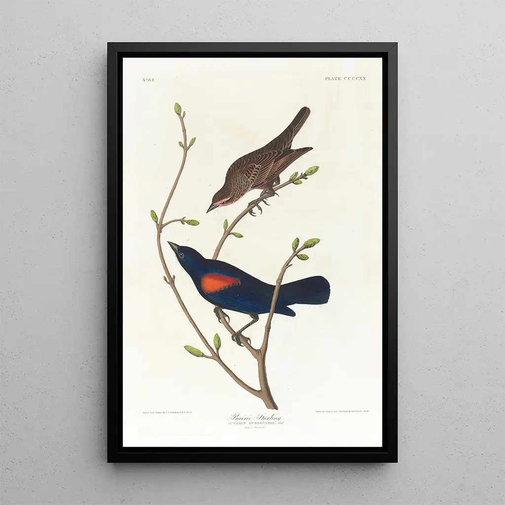 John James Audubon on 1800-luvun lintutaiteen ikoni. Hän syntyi vuonna 1785 ja omisti elämänsä amerikkalaisten lintujen tutkimukseen ja esittämiseen, nousten alan pioneereihin. Hänen teoksensa, romantismin vaikutteita saaneina, pyrkivät vangitsemaan linnuston kauneuden ja monimuotoisuuden. Étourneau des prairies on yksi hänen arvostetuimmista kuvistaan, mikä todistaa hänen sitoutumisestaan yhdistää taide ja tiede. Työnsä ansiosta Audubon ei ainoastaan rikastuttanut taiteen maailmaa, vaan myös herätti yleisön tietoisuutta luonnon suojelusta.