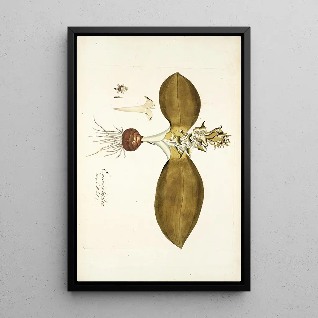 "Eucomis bifolia" Nikolaus Joseph Freiherr von Jacquinilta on elävä taidegrafiikka, joka korostaa tämän kasvin ainutlaatuista kauneutta. Kirkkaat värit, aina loistavasta vihreästä syvään violettiin, yhdistyvät luodakseen dynaamisen ja kiehtovan koostumuksen. Jacquinin hallitsema akvarellitekniikka mahdollistaa herkän tekstuurin kuvaamisen lehdissä ja kukissa, samalla tuoden koko teokseen lähes kosketeltavan elämän. Tämä taidegrafiikka on todellinen kutsu tutkia kasvilajiston rikkautta ja tarjoaa samalla visuaalisesti rikasta ja immersiivistä kokemusta.