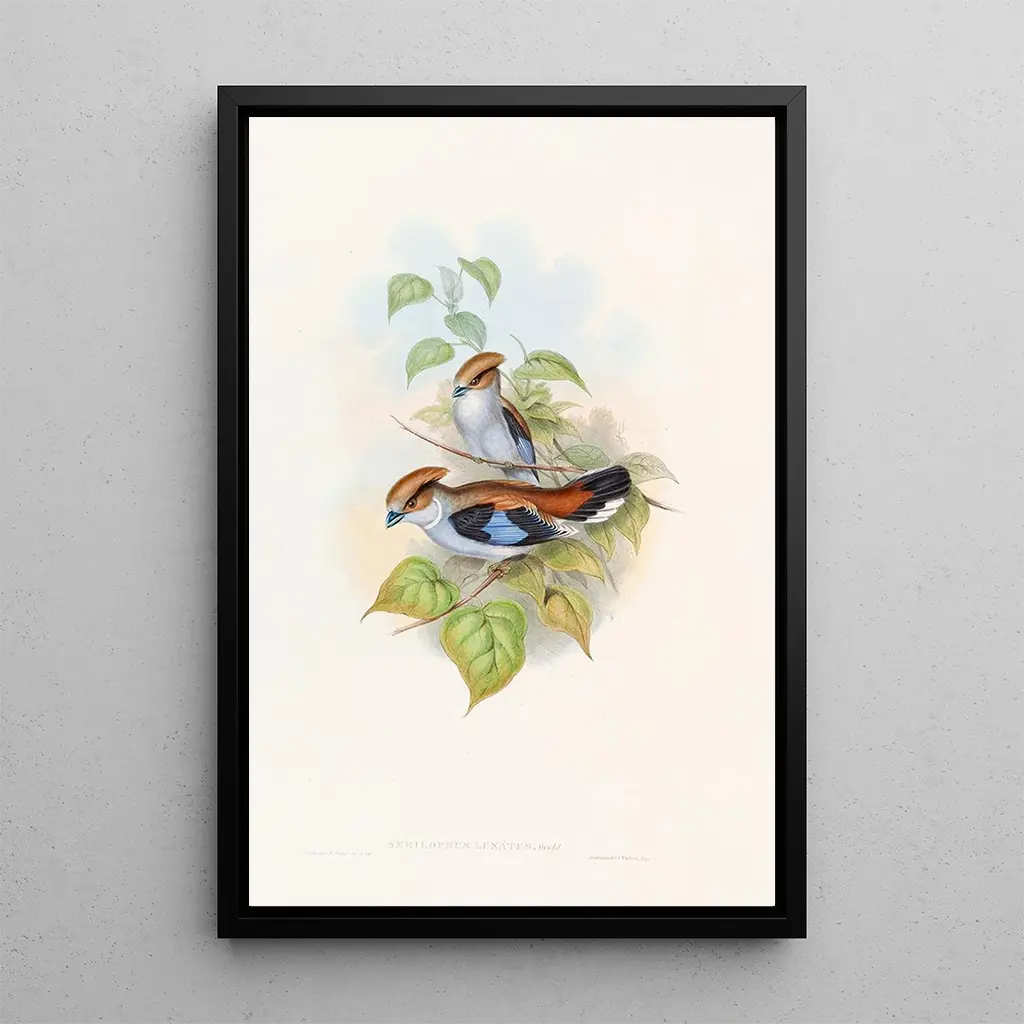 John Gould, kuuluisa lintutieteilijä ja XIX:n vuosisadan kuvittaja, oli keskeisessä roolissa lintolajien dokumentoinnissa. Hänen työnsä, joka oli vaikutteena aikansa tieteellisistä tutkimuksista, auttoi tekemään harvinaisia ja eksoottisia lintuja tunnetuiksi suurelle yleisölle. Eurylaime luné on yksi hänen merkittävistä teoksistaan, joka ei ainoastaan kuvaa luonnon kauneutta, vaan myös lajien suojelun tärkeyttä. Gould osasi yhdistää taiteen ja tieteen, tehden hänen kuvistaan viitteitä luonnontieteilijöille ja taiteen harrastajille.