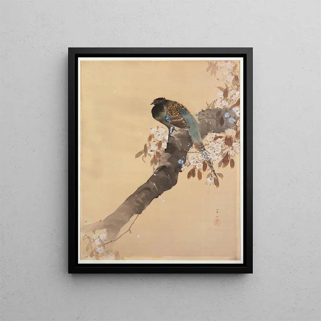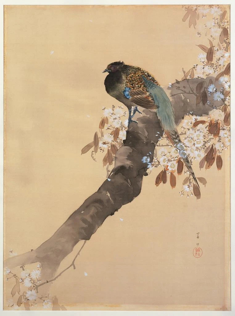 Fasaani kirsikkapuun oksalla kukkivien - Ohara Koson