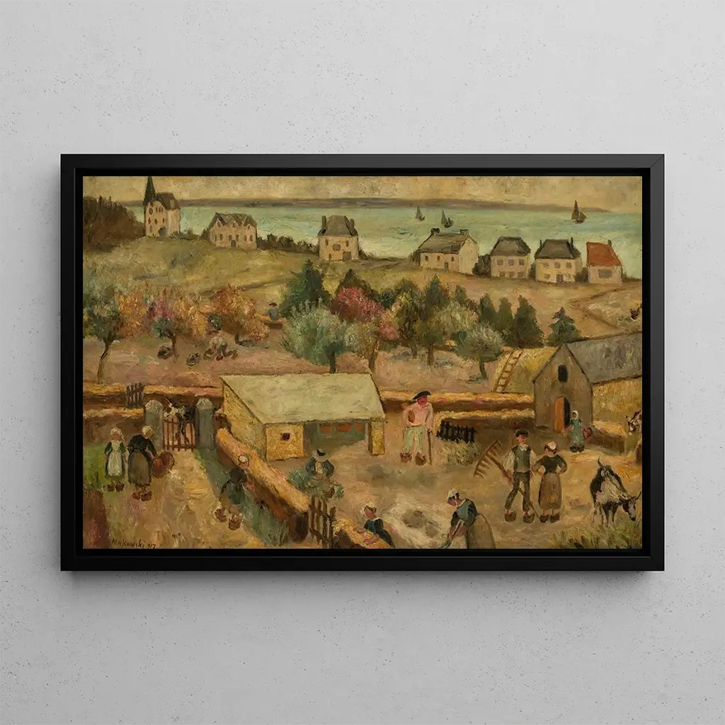 Ferme à Keranquernat : un tableau bucolique empreint de sérénité La reproduction de la Ferme à Keranquernat invite à un voyage dans un paysage rural empreint de tranquillité. Les teintes douces et terreuses se mêlent harmonieusement, créant une atmosphère apaisante. La technique de Tadeusz Makowski, qui allie le réalisme à une touche d'impressionnisme, permet de ressentir la chaleur du soleil sur les champs et le murmure du vent dans les arbres. Chaque détail, des bâtiments en pierre aux nuances des champs, évoque une vie simple et authentique, où la nature et l'homme cohabitent en parfaite harmonie. Tadeusz Makowski : un artiste entre tradition et modernité Tadeusz Makowski, né en Pologne en 1882, a su s'imposer dans le monde de l'art grâce à son style unique qui marie tradition et modernité. Influencé par le mouvement post-impressionniste, il a développé une approche personnelle qui se distingue par l'utilisation de couleurs vives et de formes stylisées. Installé en France, il a su capter l'essence de la vie rurale, tout en intégrant des éléments de son héritage polonais. Son œuvre, bien que moins connue que celle de ses contemporains, témoigne d'une sensibilité profonde envers la nature et les paysages qui l'entourent. Une acquisition décorative aux multiples atouts La reproduction de la Ferme à Keranquernat constitue une pièce décorative idéale pour divers espaces, que ce soit dans un salon chaleureux, un bureau inspirant ou une chambre apaisante. Sa qualité d'impression garantit une fidélité remarquable aux couleurs et aux détails de l'œuvre originale, tout en apportant une touche d'élégance à votre intérieur. Avec son attrait esthétique indéniable, ce tableau saura séduire les amateurs d'art et les passionnés de nature, créant une ambiance sereine et accueillante dans votre espace de vie.