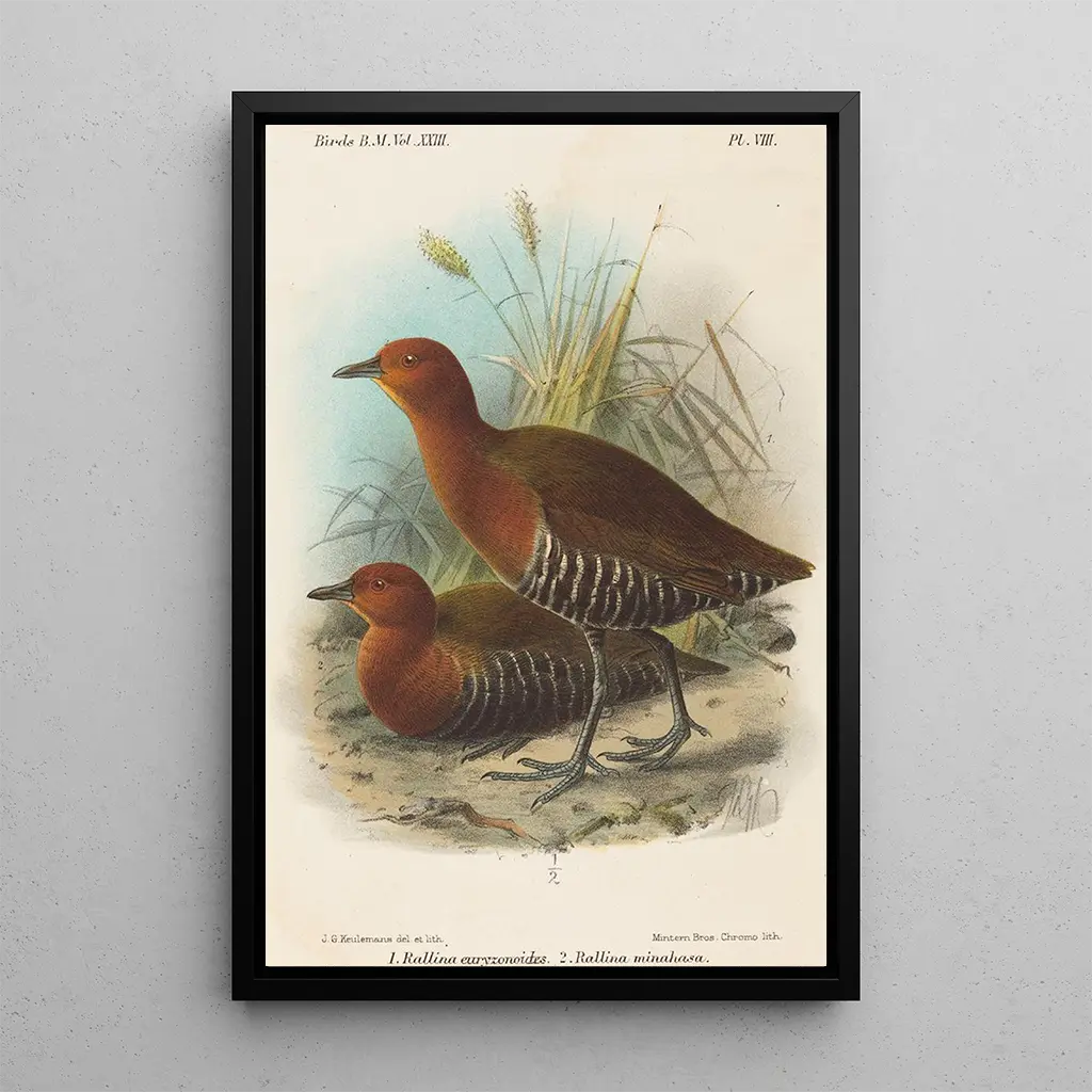 Tässä taidegrafiikka Oiseaux des Philippines -taidegrafiikasta John Gerrard Keulemans kuljettaa meidät värikkäiden ja eloisien maailmojen keskelle. Lintujen hohtavat höyhenet, huolellisesti yksityiskohtaiset, kuvaavat filippiinien luonnon rikkautta. Vesiväritekniikka, jota käytetään mestarillisesti, mahdollistaa lintujen keveyden ja sulavuuden vangitsemisen lennossa. Teoksen tunnelma on sekä rauhallinen että dynaaminen, kutsuen katsojan ihailemaan näiden kiehtovien olentojen luonnollista kauneutta. Jokainen yksityiskohta, lehdistä höyheniä, tuntuu hengittävän elämää, luoden sekä realistisen että runollisen kohtauksen.