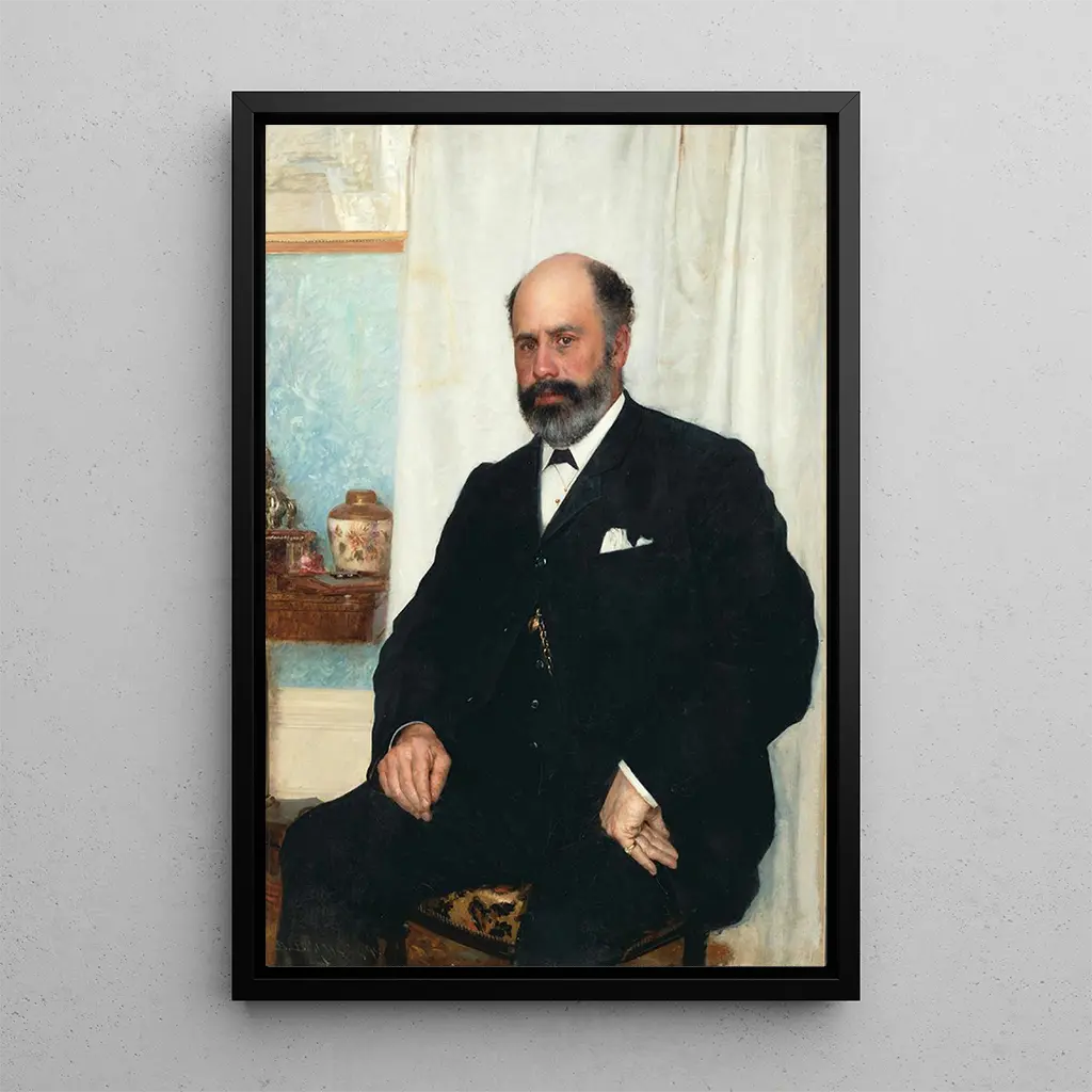 Vlaho Bukovacin "Portraitti George Hepburnista" on kiehtova teos, joka upottaa katsojan subjektin intiimiin maailmaan. Sävellys korostaa syväsilmäistä miestä, joka on pukeutunut tyylikkäästi, ja hänen piirteensä on hienovaraisesti toteutettu rikkaan ja sävykkään väripaletin avulla. Valon ja varjon leikit, jotka ovat Bukovacin tyylin tunnusmerkkejä, luovat lämpimän ja introspektiivisen tunnelman. Öljyvärimaalauksen tekniikka, joka on hallittu hienovaraisesti, mahdollistaa kasvojen ja vaatteiden yksityiskohtien vangitsemisen samalla, kun se välittää kosketeltavaa tunnetta, joka kutsuu pohdintaan.