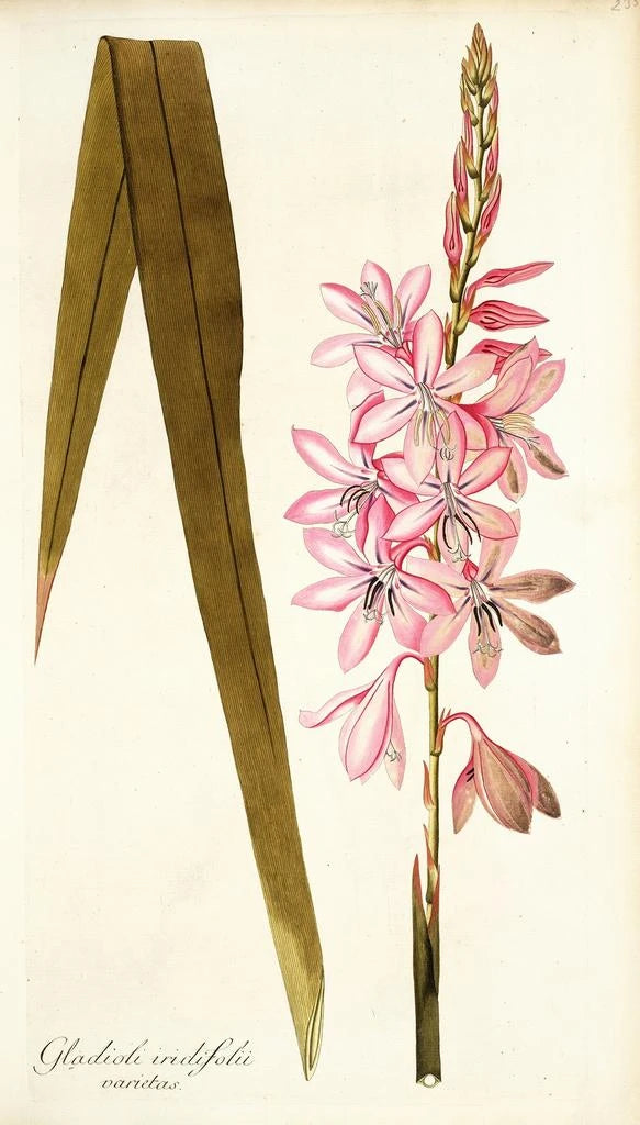 Nikolaus Joseph Freiherr von Jacquin, XVIII:n vuosisadan kasvitieteilijä ja taiteilija, osasi yhdistää tieteen ja taiteen mestarillisesti. Syntynyt vuonna 1727 Itävallassa, hän sai vaikutteita rokokon ja neoklassismin virtauksista, sisällyttäen tarkan tieteellisen elementin teoksiinsa. Hänen kasviaiheiset kuvansa, joihin Gladioli iridifolii kuuluu, todistavat hänen sitoutumisestaan dokumentoida kasvistoa poikkeuksellisella tarkkuudella. Jacquin oli myös keskeisessä roolissa monien kasvilajien esittelyssä Euroopassa, tehden hänestä tärkeän hahmon kasvitieteen historiassa. Hänen työnsä ei vain rikastuttanut kasvitietoa, vaan avasi myös tien uuteen arvostukseen kasveja taideteoksina.