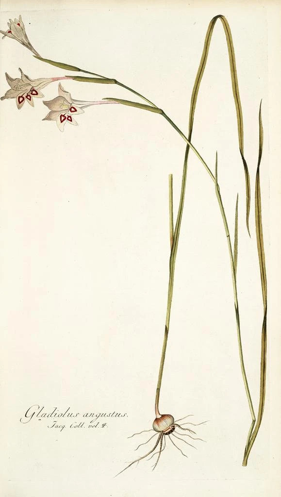 Nikolaus Joseph Freiherr von Jacquin, 1700-luvun botaniikan ja taidegrafiikan taitaja, oli keskeisessä roolissa kasvien tieteellisessä kuvittamisessa. Wienin yliopistossa kouluttautunut, hän vaikutti aikansa löytöihin ja matkusti siirtokuntiin tutkiakseen eksoottista kasvillisuutta. Hänen tyylinsä, joka yhdistää tieteellisen tarkkuuden ja taiteellisen herkkyyden, merkitsi aikaa, jolloin taide ja tiede kohtasivat. Jacquinin teokset, kuten Gladiolus angustus, todistavat hänen sitoutumisestaan luonnon kauneuden tallentamiseen samalla kun hän edistää kasvitieteellistä tietoa. Hänen perintönsä elää edelleen, inspiroiden taiteilijoita ja tiedemiehiä vuosisatojen ajan.