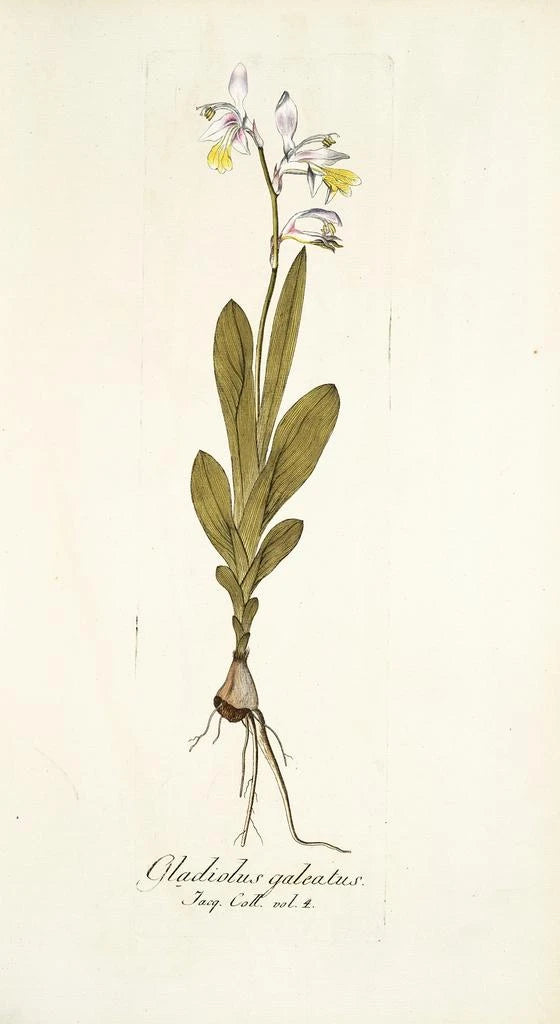 Nikolaus Joseph Freiherr von Jacquin, 1700-luvun kasvitieteilijä ja taiteilija, osasi yhdistää tieteen ja taiteen mestarillisesti. Kasvitieteen koulutuksen saanut, hän matkasi Euroopan ja Karibian halki, inspiroituen eksoottisista maisemista ja kukkivista lajikkeista, joita hän löysi. Hänen teoksensa, Gladiolus galeatus, sijoittuu aikaan, jolloin kasvien tieteellinen havainnointi oli kukoistamassa, ja hänen tyylinsä erottuu huomattavalla tarkkuudella ja yksityiskohtien huomiolla. Jacquin ei ainoastaan edistänyt kasvitiedettä, vaan jätti myös taiteellisen perinnön, joka inspiroi edelleen kukkien ja taiteen harrastajia.