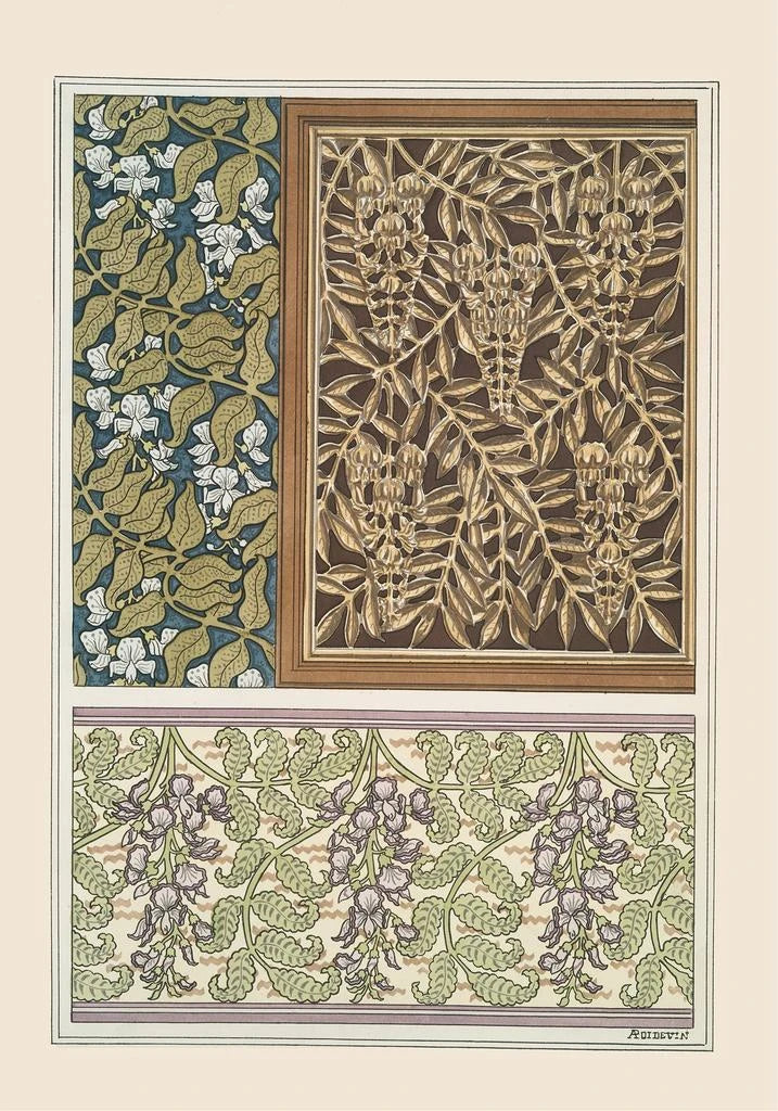 Maurice Pillard Verneuilin taidegrafiikka Glycine 3 johdattaa meidät eloisaan kukkivaan maailmaan, jossa violetti ja vihreä sävyt kietoutuvat hienovaraisesti toisiinsa. Kankaalla, joka on täynnä yksityiskohtia, on rauhallisuuden ja unelmoinnin tunnelma, jossa jokainen terälehti tuntuu hehkuvan valossa. Verneuilin tekniikka, joka yhdistää impressionismin ja art nouveau -tyylin, luo harmonisen koostumuksen, joka vetää katseen puoleensa ja kutsuu mietiskelyyn. Kukkien sulavat kaaret, yhdistettynä hienovaraisiin taustoihin, tarjoavat kiehtovan visuaalisen kokemuksen, ikään kuin olisit siirtynyt vehreän puutarhan sydämeen.