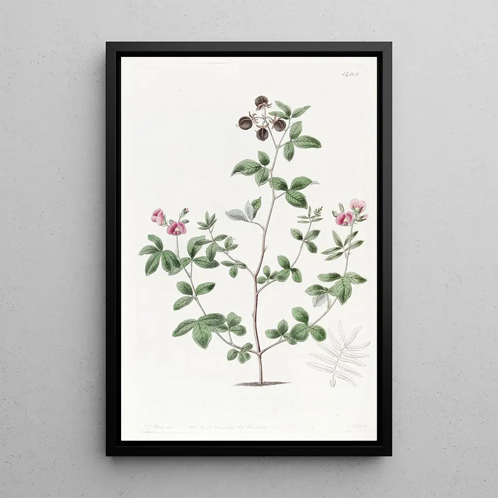 Taidegrafiikka Gompholobium de M. Knight kuljettaa meidät maailmaan, jossa monimuotoisuus kukkivassa luonnossa korostuu loistokkaasti. Hento vaaleanpunainen ja violetti sävy yhdistyvät vihreän sävyihin, luoden harmonisen ja elävän taulun. Vesiväritekniikka, jota käytetään hienovaraisesti, antaa keveyden ja sulavuuden vaikutelman, ikään kuin kukat olisivat liikkeessä. Jokainen yksityiskohta on huolellisesti toteutettu, kutsuen katsojan tutkimaan tämän ainutlaatuisen kasvin hienovaraista kauneutta, samalla herättäen rauhan ja ihmetyksen tunteita.