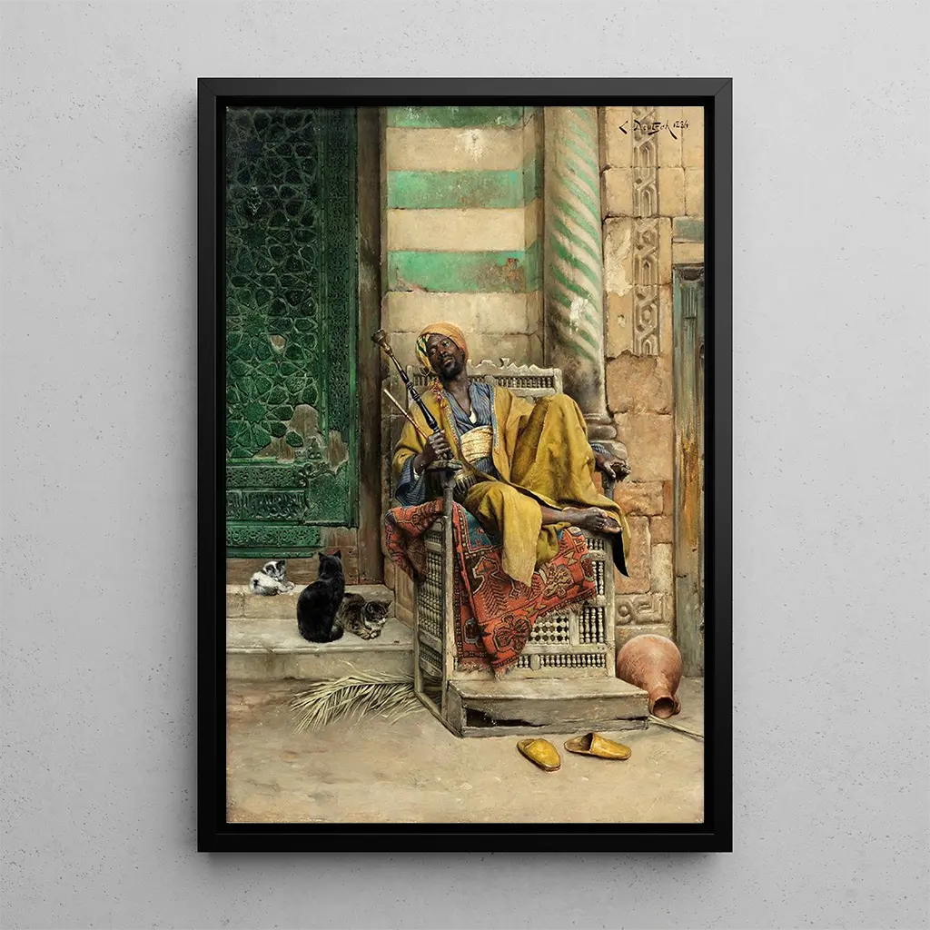 "Le Fumeur de goza" -taidegrafiikan reproduktio on erinomainen valinta sisustuksen rikastuttamiseen. Olipa kyseessä olohuone, toimisto tai makuuhuone, tämä teos lisää eksoottisuutta ja hienostuneisuutta tilaan. Reproduktion laatu takaa täydellisen värien ja yksityiskohtien uskollisuuden alkuperäisteokselle, jolloin voit nauttia tämän kohtauksen esteettisestä viehätyksestä täysin. Valitsemalla tämän taulun teet valinnan teoksesta, joka herättää uteliaisuutta ja ihailua, samalla luoden kodikkaan ja lämpimän ilmapiirin sisätiloihisi.