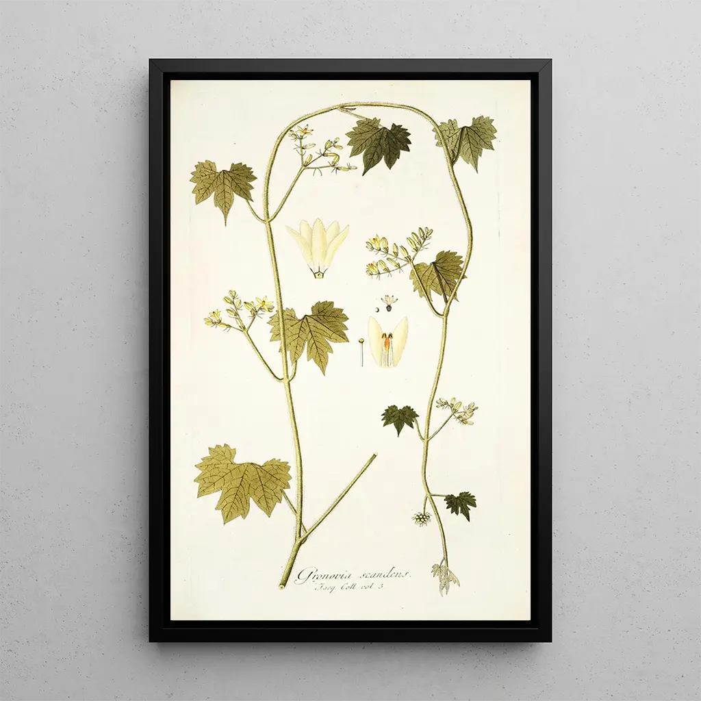 Gronovia scandens -taidegrafiikka on erinomainen koristevalinta niille, jotka haluavat tuoda vihreyttä tilaan. Olipa kyseessä toimisto, olohuone tai makuuhuone, tämä taulu rikastuttaa sisustustasi laadullaan ja esteettisellä viehätyksellään. Värikkäät ja hienostuneet yksityiskohdat kiinnittävät huomion ja luovat lämpimän tunnelman. Valitsemalla tämän taulun sijoitat huoneeseesi teoksen, joka juhlistaa luonnon kauneutta ja lisää taiteellista sävyä sisustukseesi. Se on teos, joka ei epäilemättä herätä ihailua ja ihmetystä.