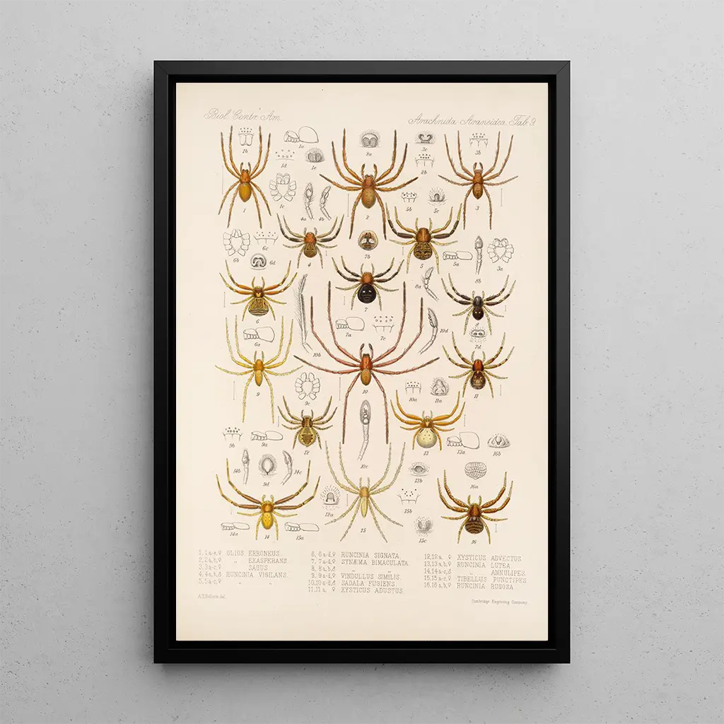 Arachnida Araneidea Pl 09 : upe kiehtova tutkimus hämähäkkien maailmasta L'œuvre "Arachnida Araneidea Pl 09" de Frederick DuCane Godman est une représentation minutieuse et captivante des araignées. Avec des détails précis et une palette de couleurs délicates, cette reproduction évoque une atmosphère à la fois scientifique et artistique. Les nuances de brun et de vert, associées à des traits fins, permettent de plonger dans l'univers complexe de ces créatures souvent mal comprises. La technique de l'illustration naturaliste, caractéristique de Godman, donne vie à chaque araignée, transformant ce tableau en une véritable fenêtre sur la biodiversité. Frederick DuCane Godman : un pionnier de l'illustration naturaliste Frederick DuCane Godman, actif au XIXe siècle, est reconnu pour ses contributions à l'illustration scientifique, notamment dans le domaine de l'entomologie. Influencé par les découvertes de son époque, il a su allier rigueur scientifique et sens artistique. Godman a collaboré avec d'autres naturalistes pour documenter la faune, et ses œuvres sont devenues des références pour les chercheurs et les amateurs d'art. "Arachnida Araneidea Pl 09" témoigne de son engagement à capturer la beauté et la complexité du monde naturel, tout en éduquant le public sur la diversité des espèces. Une acquisition décorative aux multiples atouts La reproduction du tableau "Arachnida Araneidea Pl 09" est une pièce décorative idéale pour les passionnés de nature et d'art. Que ce soit dans un salon, un bureau ou une chambre, cette toile apporte une touche d'élégance et de curiosité. Sa qualité d'impression garantit une fidélité aux détails originaux, permettant d'apprécier chaque nuance et chaque trait. En intégrant cette œuvre dans votre décoration, vous offrez non seulement un élément esthétique, mais aussi une conversation captivante sur l'univers fascinant des araignées.