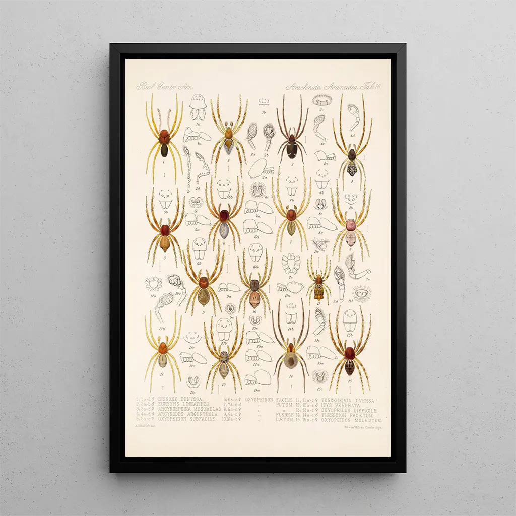 Taidegrafiikka Arachnida Araneidea Pl 16 on ihanteellinen koriste-esine eri tiloihin, olipa kyseessä olohuone, toimisto tai makuuhuone. Sen tulostuslaatu takaa erinomaisen uskollisuuden alkuperäisille yksityiskohdille, mahdollistaen jokaisen vivahteen ja tekstuurin arvostamisen. Tämä taidegrafiikka, sen esteettisen vetovoiman ansiosta, herättää uteliaisuutta ja keskusteluja, samalla lisäten luonnollisen eleganssin kosketuksen sisätiloihisi. Sisällyttämällä tämän teoksen sisustukseesi luot ainutlaatuisen taiteellisen ulottuvuuden ja juhlistat samalla hämähäkkien maailman kauneutta.