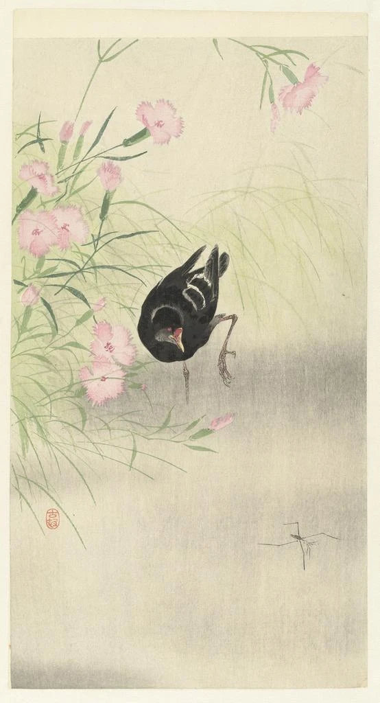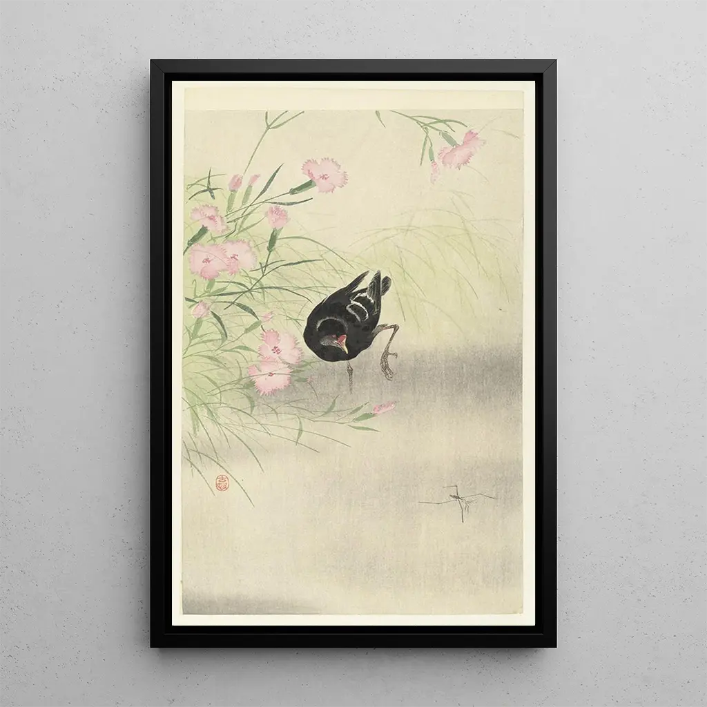 Taidetuloste | Vesilintu kukkivän kasvin vieressä - Ohara Koson