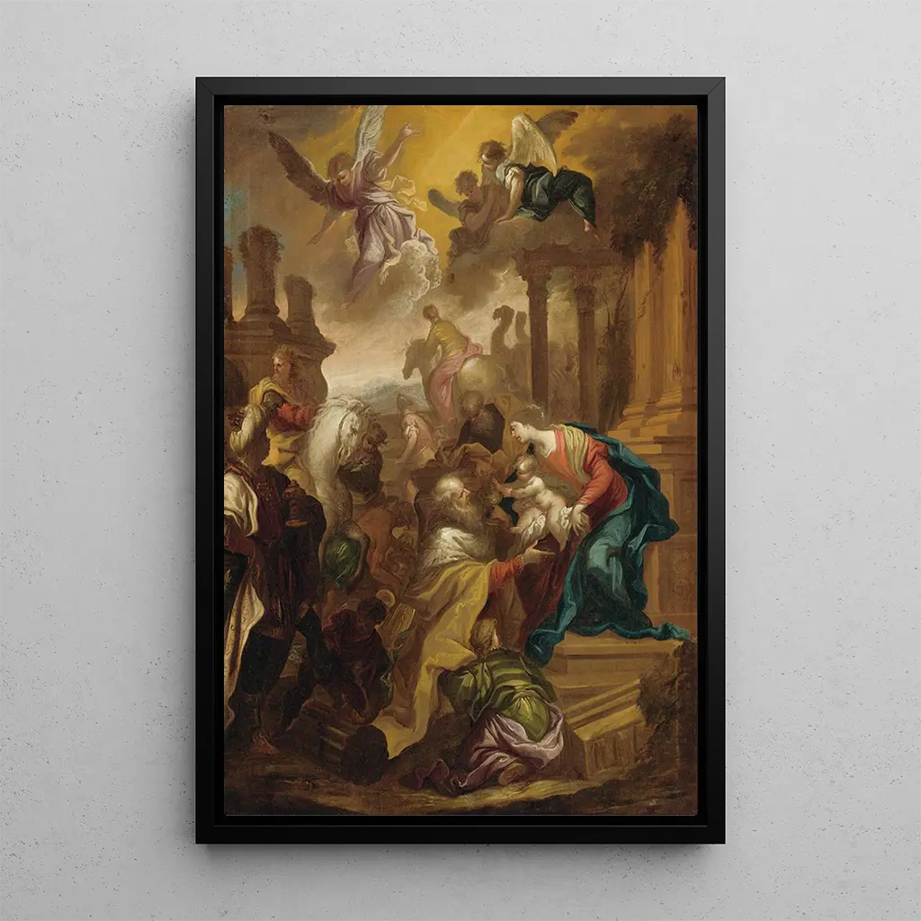 Adorazione dei Magi: kunnioitus syntymän taikuudelle Taidegrafiikan Adorazione dei Magi -reproduktionen on elävä ja tunteikas kohtaus, joka juhlistaa Magi-viisaita vierailemassa Jeesus-lapsen luona. Rikkaat ja syvät värit, loistavasta kullasta mystisiin sinisiin, luovat sekä juhlavan että pyhän tunnelman. Bartolomeo Biscainon tekniikka, joka on korostunut liikkeen ja valon tunteessa, herättää hahmot eloon, jokainen ilmaisten havaittavaa hartauden tunnetta. Tämä teos, dynaamisuutensa ja harmonisen koostumuksensa ansiosta, vie katsojan tämän ikonisen raamatullisen tapahtuman ytimeen. Bartolomeo Biscaino: italialaisen barokin virtuoosi Bartolomeo Biscaino, joka toimi 1600-luvulla, tunnetaan poikkeuksellisesta lahjakkuudestaan uskonnollisen taiteen alalla. Hän kasvoi barokin perinteessä ja vaikutteita saaneena mestareilta kuten Caravaggio, hän sisällytti teoksiinsa realismia ja tunteita. Biscaino onnistui luomaan nimeä kyvyllään vangita suuria henkisiä hetkiä, tehden maalauksistaan voimakkaita visuaalisia kertomuksia. Hänen taiteellinen perintönsä jatkuu, todistaen hänen työnsä merkityksestä italialaisessa taidekentässä. Monipuolinen koristeellinen hankinta Taidegrafiikan Adorazione dei Magi -reproduktionen on koristeellinen valinta, joka sopii täydellisesti erilaisiin ympäristöihin. Olipa kyseessä olohuone, ruokasali tai meditaatioalue, tämä taulu tuo sisustukseesi henkisen ja juhlavan ulottuvuuden. Sen tulostuslaatu ja alkuperäisten yksityiskohtien tarkkuus tekevät siitä taideteoksen, joka houkuttelee katsetta ja herättää ihailua. Valitsemalla tämän kankaan rikastutat sisustustasi ja samalla juhlistat kristillisen perinteen keskeistä hetkeä, tuoden historiaa ja kulttuuria osaksi arkeasi.