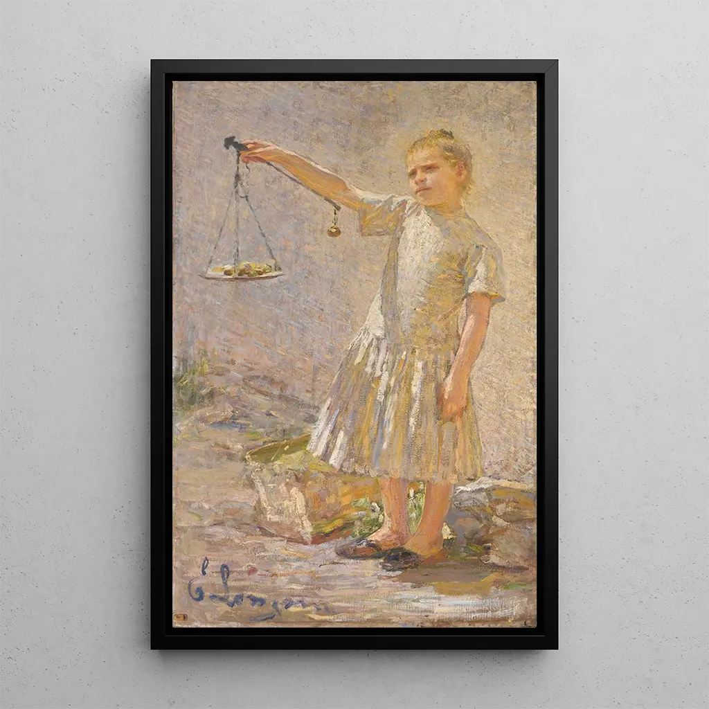 La taidegrafiikka de La vendeuse de fruits d'Emilio Longoni est une œuvre qui capte l'essence du quotidien avec une intensité remarquable. Les couleurs chaudes et terreuses, mêlées à des touches de lumière, créent une atmosphère à la fois réaliste et poétique. La composition met en avant une femme au regard déterminé, entourée de fruits éclatants, symbole de la richesse de la nature et du travail acharné. La technique de l'huile sur toile permet de rendre les textures des fruits et des vêtements avec une précision saisissante, invitant le spectateur à plonger dans ce moment figé dans le temps.