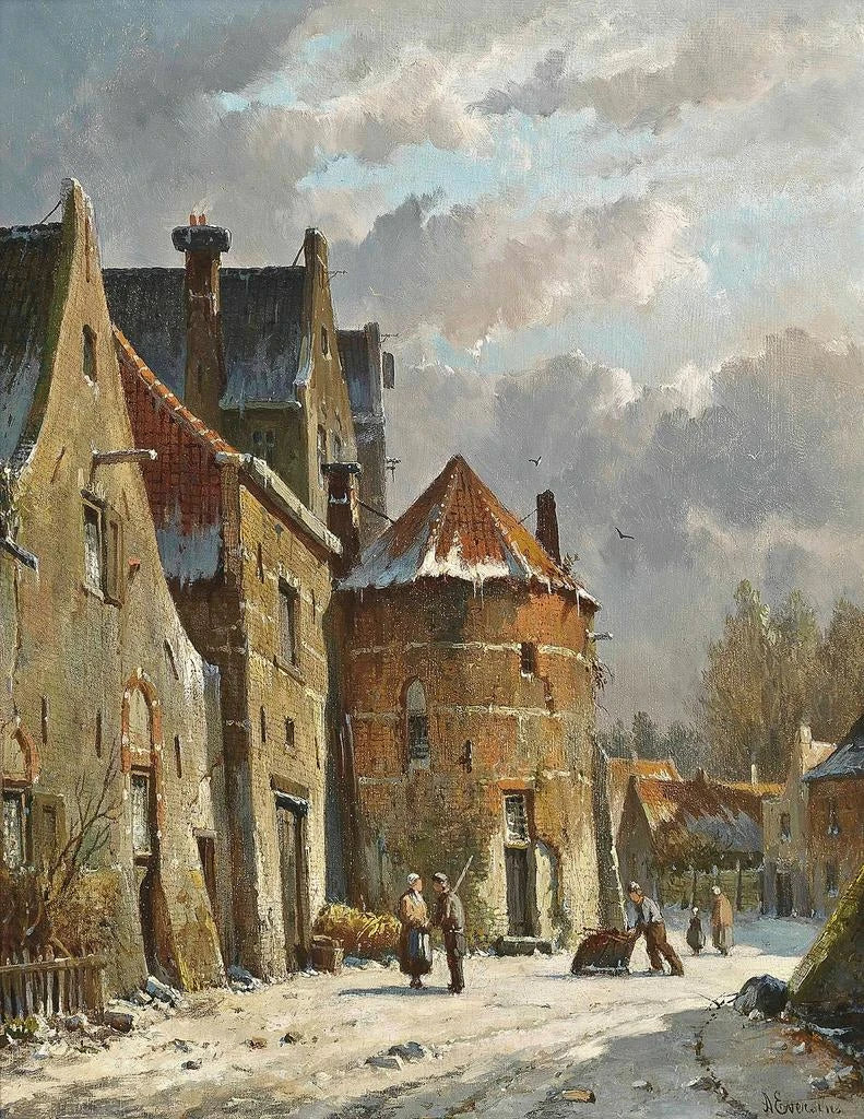 Taidetuloste | Henkilöhahmoja hollantilaisella kadulla talvella - Adrianus Eversen