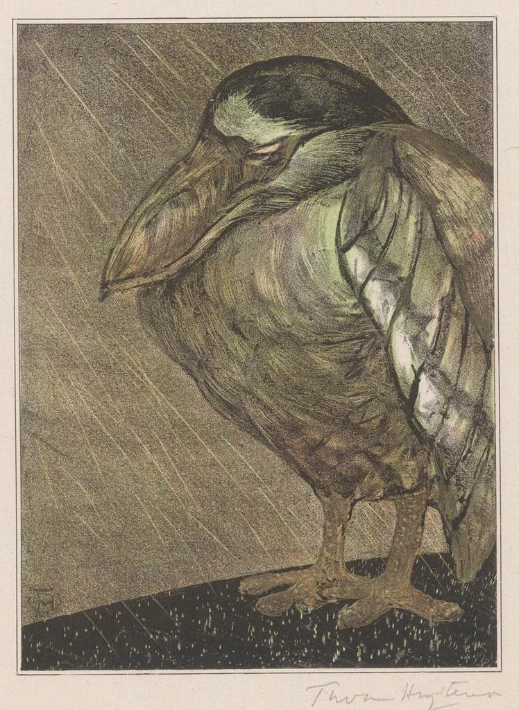 Taidetuloste | Heron in a boat under the rain - Theo van Hoytema