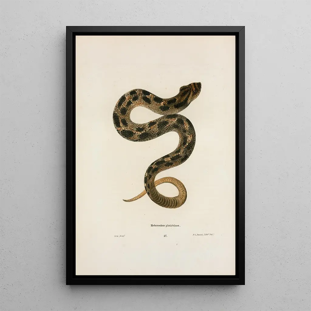 L'taidegrafiikka Heterodon laupainen, kiehtova teos John Edwards Holbrookilta, kutsuu meitä tutkimaan tämän lajin ainutlaatuisuutta. Sen erottuvan nenän ja maanläheisten värien ansiosta tämä käärme sulautuu luonnolliseen ympäristöönsä, samalla kiehtoen katsojaa hienovaraisilla sävyillään. Holbrookin valitsema piirustustekniikka korostaa ihon tekstuureja, luoden sekä kiehtovan että luonnonvaraisen elämän kunnioittavan ilmapiirin. Jokainen yksityiskohta, suomista varjoihin, kertoo huolellisesta havainnoinnista ja intohimosta biodiversiteettiin.