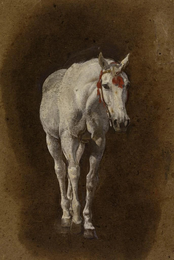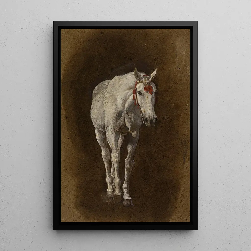 Tässä kiehtovassa teoksessa Léon Bonnat kuvaa hevosta koko loistossaan. Dynaaminen sommittelu, jossa eläin vaikuttaa lähtevän liikkeelle voimalla, korostuu rikkaiden värien ja ruskean sekä mustan sävyjen avulla. Bonnatin tekniikka, joka yhdistää realismia ja impressionismia, luo elävän, lähes kosketeltavan ilmapiirin. Hevosen harjan ja lihasten yksityiskohtainen kuvaus todistaa taiteilijan taitoa vangita tämän eläimen villi kauneus. Tämä taidegrafiikka hevosen kuvasta kutsuu katsojan tuntemaan luonnon voiman ja armon, samalla tarjoten ikkunan 1800-luvun ratsastuskulttuuriin.