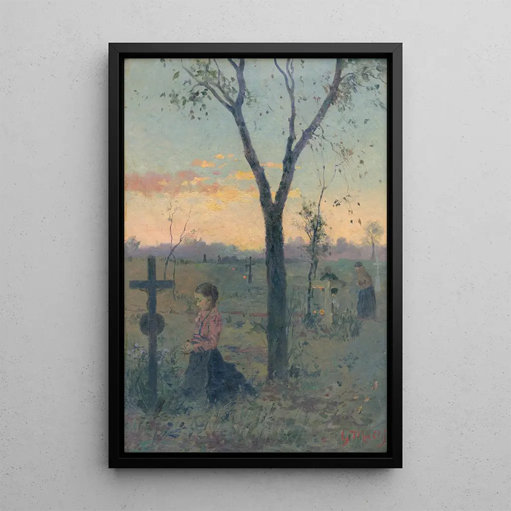 Taidegrafiikka "Hiljainen rukous hautauksessa" on ihanteellinen koriste-esine erilaisiin tiloihin, kuten olohuoneeseen, toimistoon tai makuuhuoneeseen. Sen tulostuslaatu ja uskollisuus alkuperäiselle teokselle tekevät siitä houkuttelevan valinnan taiteen ystäville. Sisustukseesi lisäämällä tämän kankaan tuot lisää eleganssia ja syvyyttä. Tämän teoksen esteettinen vetovoima herättää varmasti keskustelua ja lisää mietiskelyn ulottuvuuden ympäristöösi. Se on täydellinen valinta niille, jotka haluavat yhdistää taiteellisen kauneuden ja rauhoittavan tunnelman.