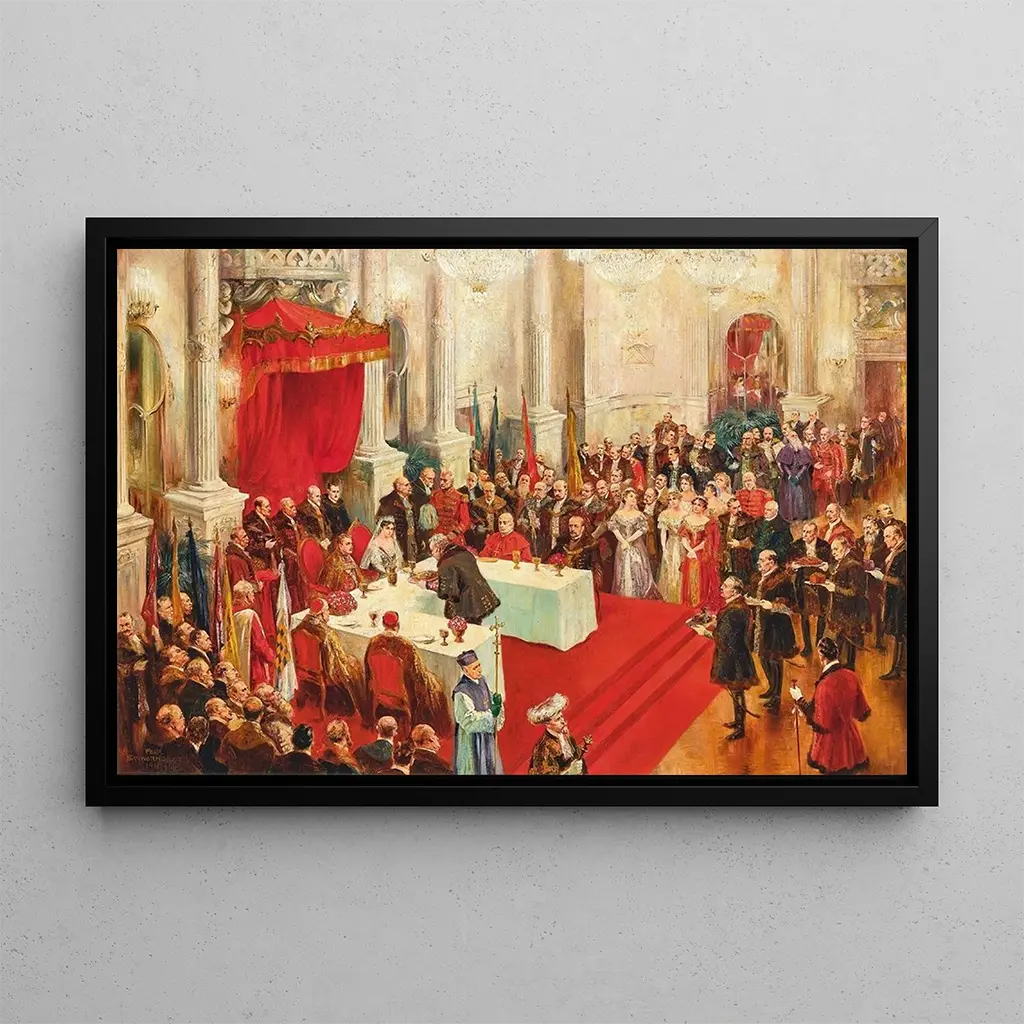 "Kuningasjuhla" taidegrafiikan reproduktio on koristeellinen kappale, joka kaunistaa minkä tahansa tilan, olipa kyseessä olohuone, toimisto tai makuuhuone. Sen tulostuslaatu ja alkuperäisten yksityiskohtien tarkkuus tekevät siitä ihanteellisen valinnan taiteen harrastajille ja historian ystäville. Sen esteettinen vetovoima lisää eleganssia ja hienostuneisuutta sisustukseesi, samalla herättäen keskusteluja kuninkaallisista perinteistä ja merkittävistä historiallisista tapahtumista.