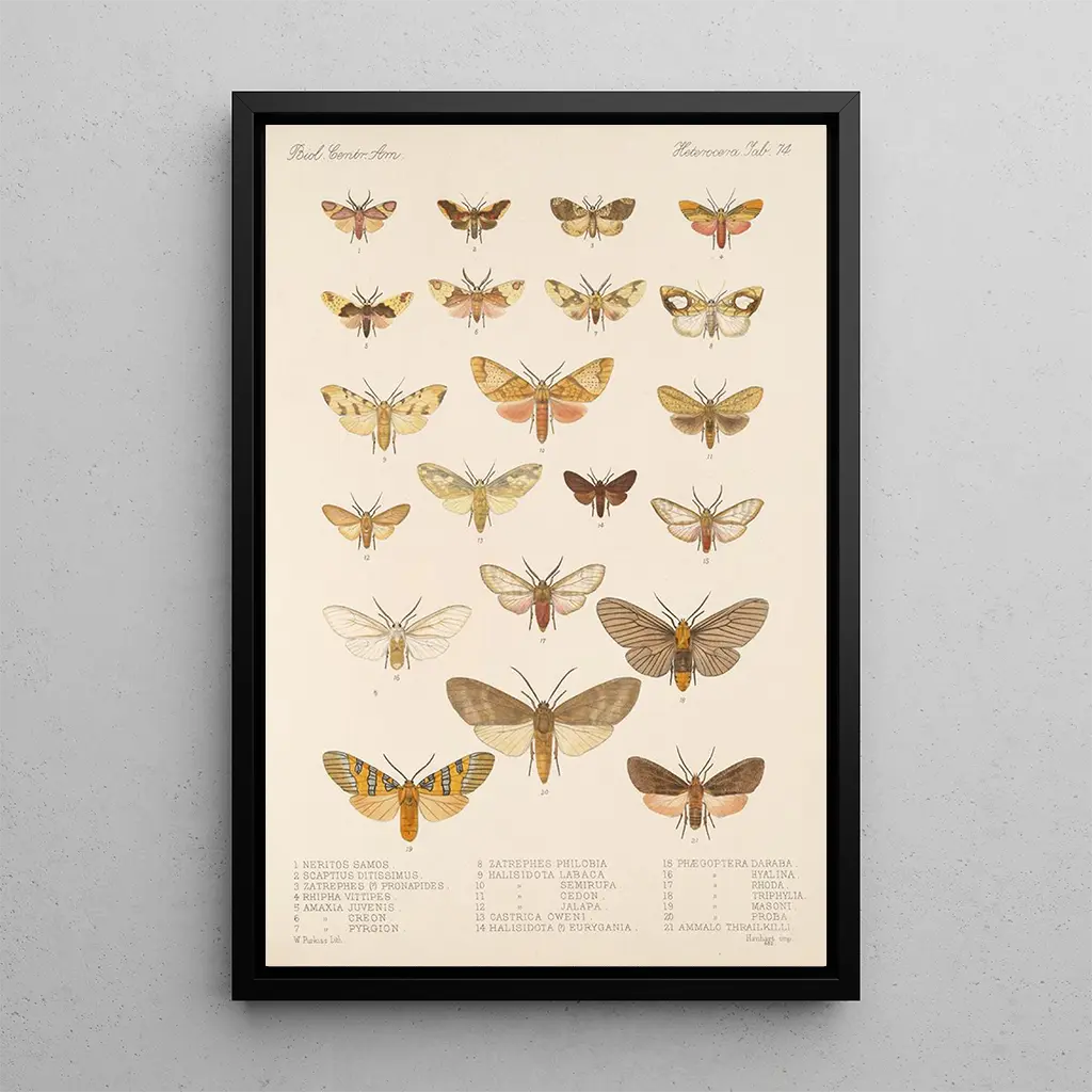 La taidegrafiikka de "Insecta Lepidoptera Heterocera Pl 074" est une pièce décorative qui saura enrichir votre intérieur, que ce soit dans un salon, un bureau ou une chambre. Sa qualité d'impression garantit une fidélité aux détails originaux, permettant d'apprécier toute la délicatesse de l'œuvre. Avec son attrait esthétique, cette toile devient un véritable point focal, suscitant curiosité et admiration. Offrez-vous cette taidegrafiikka pour apporter une touche de nature et d'élégance à votre décoration, tout en célébrant la beauté des insectes nocturnes.