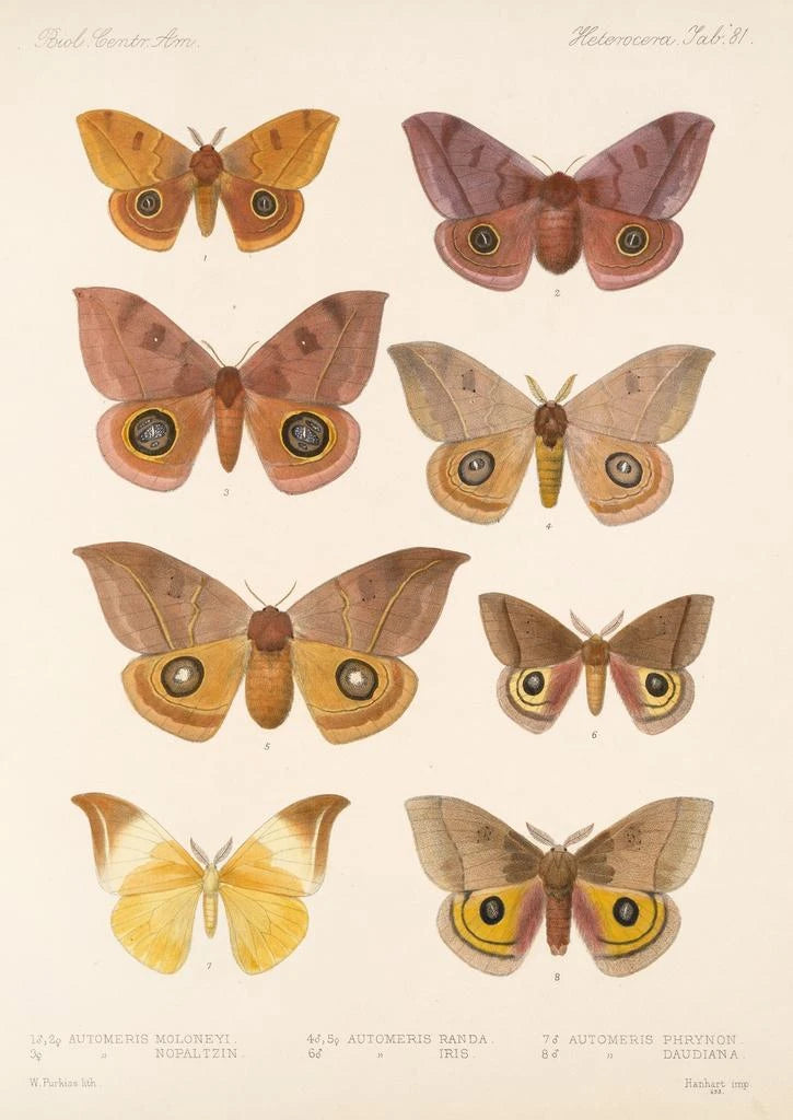 " Insecta Lepidoptera Heterocera Pl 081" -taidegrafiikan reproduktio on erinomainen koristeellinen valinta erilaisiin tiloihin, olipa kyseessä olohuone, toimisto tai makuuhuone. Sen tulostuslaatu ja alkuperäisten värien uskollisuus tekevät siitä kiehtovan taideteoksen, joka kiinnittää katseen. Lisäämällä tämän taulun sisustukseesi tulet tuomaan ripauksen eleganssia ja uteliaisuutta, samalla juhlistaen luonnon kauneutta. Tämä taulu ei ole vain koriste-elementti, vaan myös keskustelunaihe, joka herättää kiinnostusta kiehtovaan hyönteismaailmaan ja biodiversiteetin rikkauksiin.
