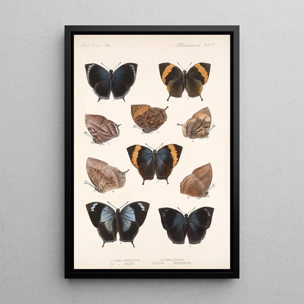Frederick DuCane Godmanin teos "Insecta Lepidoptera Rhopalocera Pl 034" on todellinen ylistys perhosten kauneudelle. Tämä taidegrafiikkaa erottuu kirkkaiden värien ja huolellisten yksityiskohtien ansiosta, jotka paljastavat näiden kiehtovien hyönteisten siipien hienostuneisuuden. Vesiväritekniikka, jota on käytetty mestarillisesti, antaa kokonaisuudelle keveyttä ja läpinäkyvyyttä, ikään kuin perhoset olisivat lähdössä lentoon. Tämä teoksen välittämä tunnelma kutsuu ihmetykseen ja mietiskelyyn, kuljettaen katsojan maailmaan, jossa luonto paljastaa koko loistonsa.
