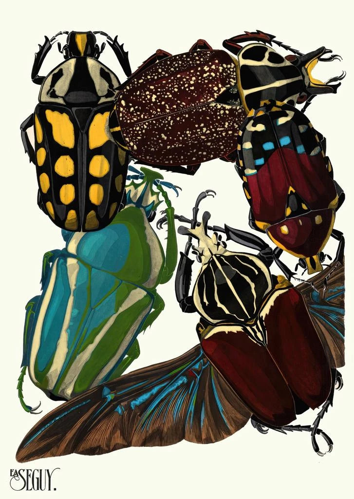 Émile-Allain Séguy, 1900-luvun alun merkittävä hahmo, osasi yhdistää rakkautensa luontoon ja taiteelliseen lahjakkuuteensa. Hänen teoksensa sijoittuvat Art Nouveau -liikkeeseen, jossa hän tutki orgaanisia muotoja ja luonnosta inspiroituneita kuvioita. Séguy vaikutti aikansa tieteellisiin edistysaskeleisiin, mikä johti hänen luomuksiinsa, jotka ovat sekä taiteellisia että opettavaisia. Insectes Pl03 on täydellinen esimerkki hänen lähestymistavastaan, jossa jokainen yksityiskohta on huolellisesti tarkkailtu ja esitetty, mikä osoittaa hänen sitoutumisensa biodiversiteetin säilyttämiseen.