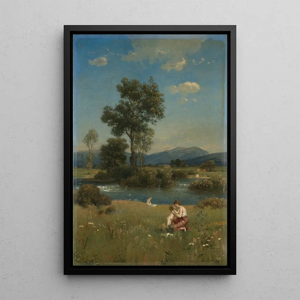 Tässä taidegrafiikka Idylli kolmella -teoksesta Emil Lugo kuljettaa meidät pehmeyden ja hellyyden maailmaan. Sävellys korostaa kolmea ihmishahmoa, joiden ilmeet ja eleet viestivät lämpimästä läheisyydestä. Pastellivärit hallitsevat, luoden rauhallisen ja rauhoittavan ilmapiirin, kun taas pehmeä valo näyttää hyväilevän hahmoja. Lugo'n tekniikka, joka yhdistää öljyvärimaalauksen ja impressionistiset kosketukset, herättää jokaisen yksityiskohdan eloon, tehden kohtauksesta lähes kosketeltavan. Tämä teos kutsuu mietiskelyyn, pakenemaan hetkessä, jossa aika tuntuu pysähtyvän.
