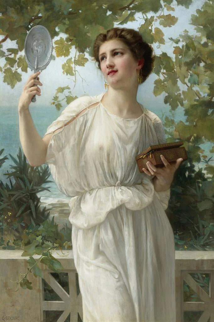 Guillaume Seignac, 1900-luvun alun ranskalainen taiteilija, tunnetaan neoklassisesta tyylistään, joka yhdistää perinnettä ja moderniutta. Hän on vaikuttunut akateemisen maalaustaiteen suurmestareista ja sijoittuu aikaan, jolloin taide etsii uutta ja kunnioittaa klassisia kaavoja. Seignac on onnistunut vakiinnuttamaan asemansa naishahmojen kuvauksillaan, jotka ovat usein idealisoituja ja heijastavat romanttista ja runollista näkemystä kauneudesta. Hänen työnsä on jatkuvan harmonian ja eleganssin etsimisen tulos, tehden hänestä merkittävän hahmon aikakaudellaan.